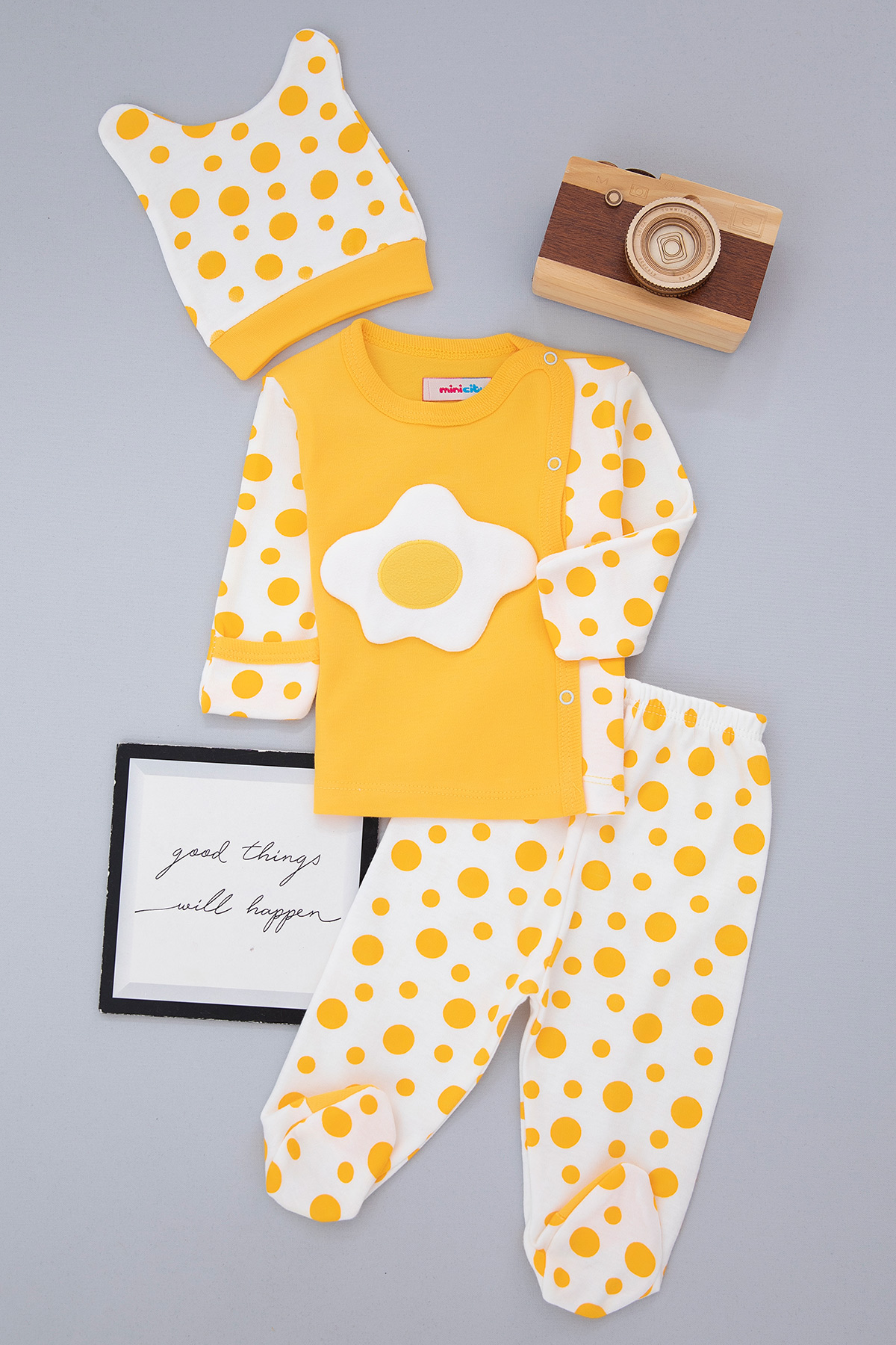 Bebek Puanlı Yumurta Üçlü Zıbın Takım - 9250 (0-3 Ay)