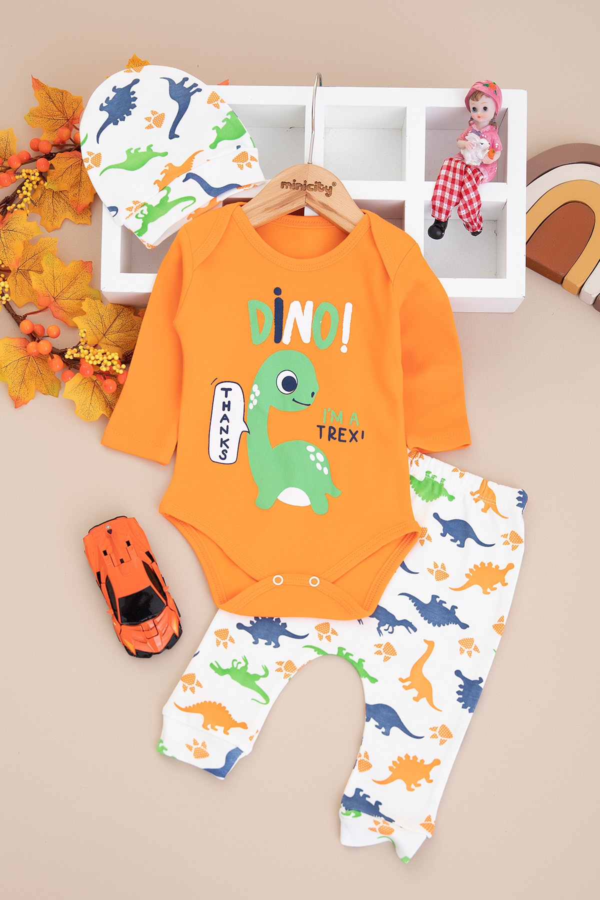 Bebek Renkli Dino Baskılı Badili Takım - 1130 (3-9 Ay)