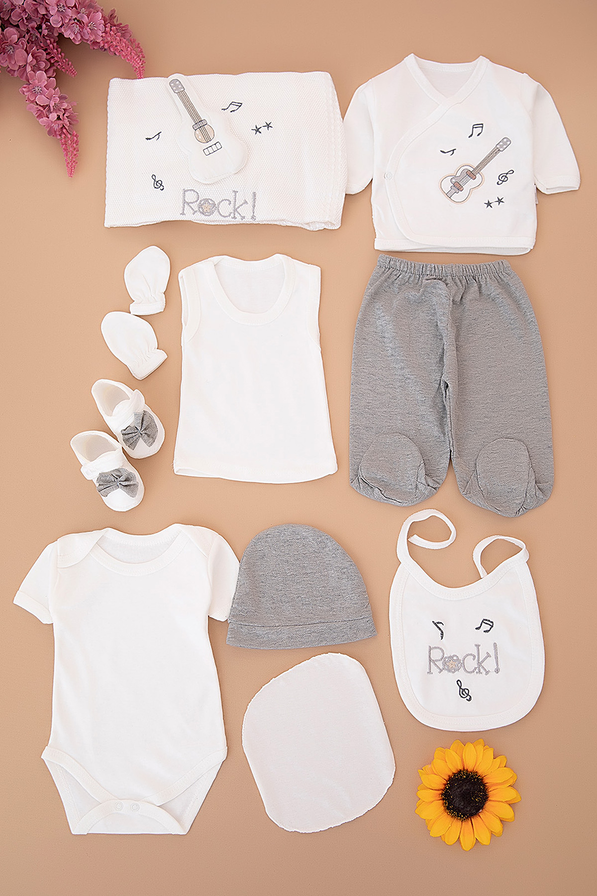 Bebek Rock Gitar Nakışlı 10`Lu Zıbın Seti - 20314