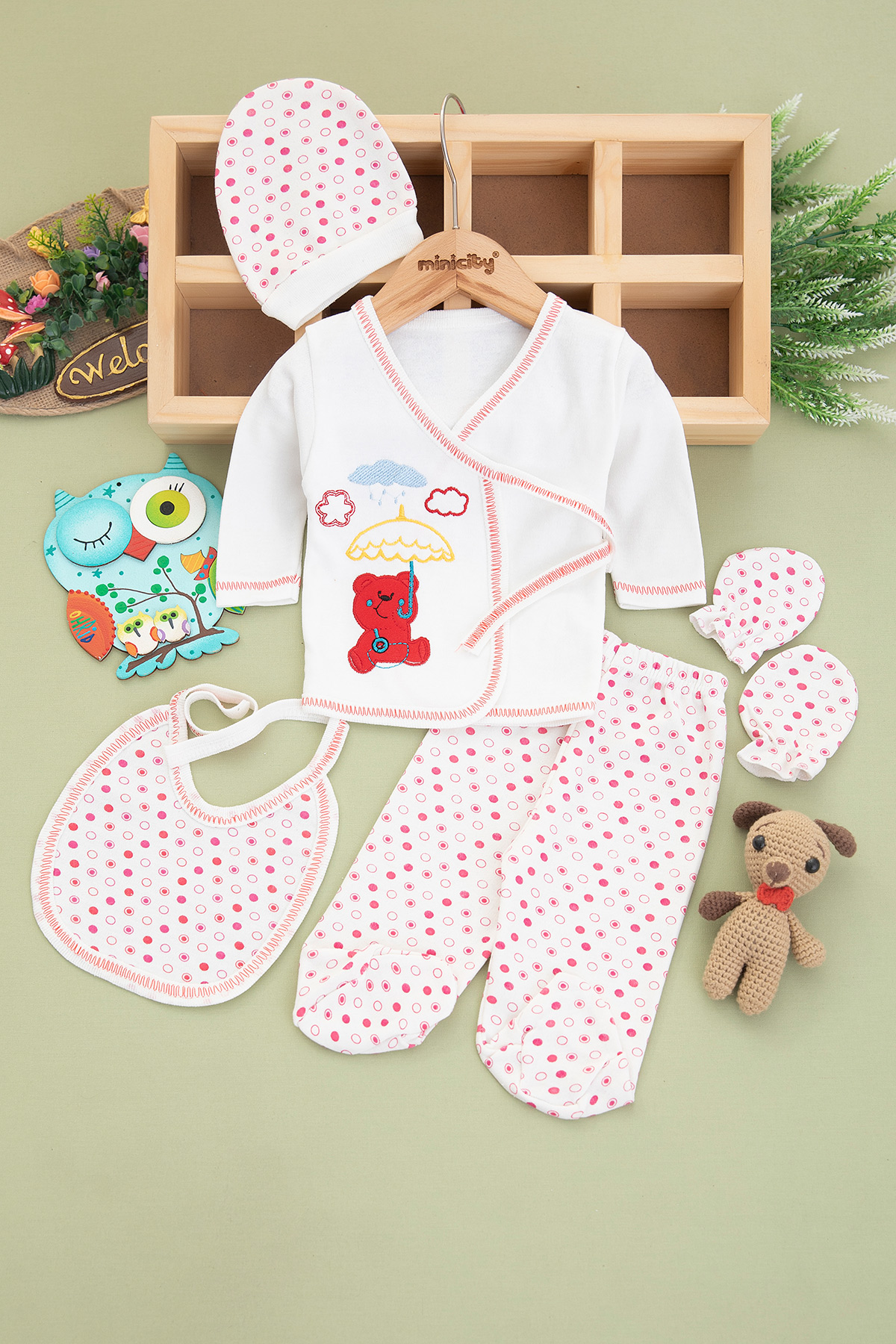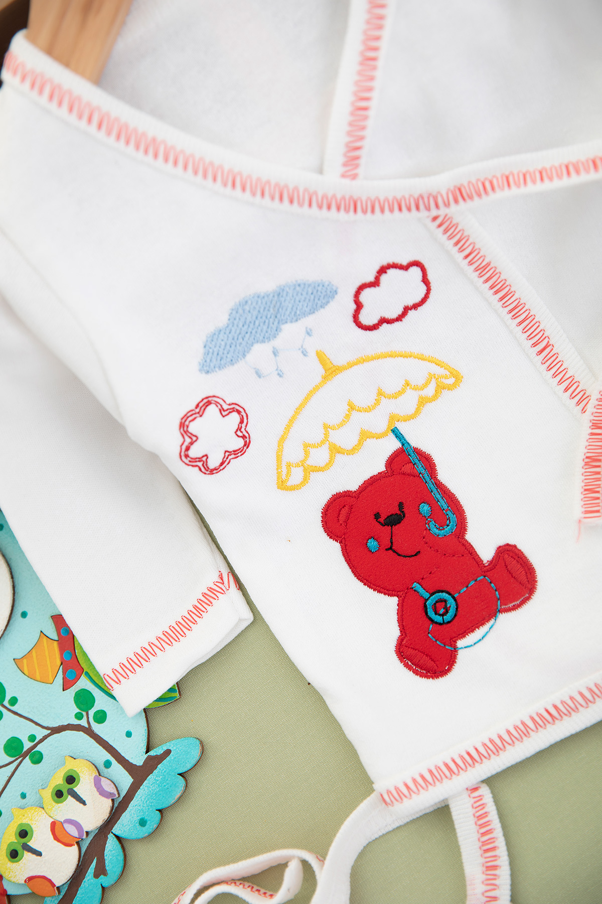 Bebek Şemsiyeli Ayıcık Nakışlı 5`Li Zıbın Seti