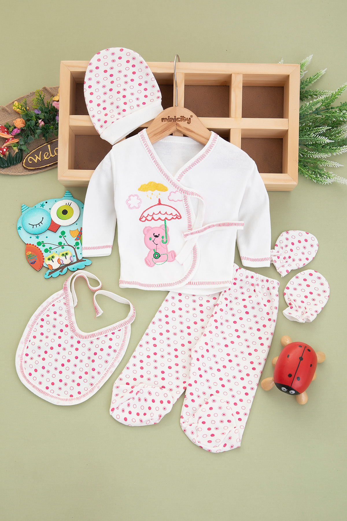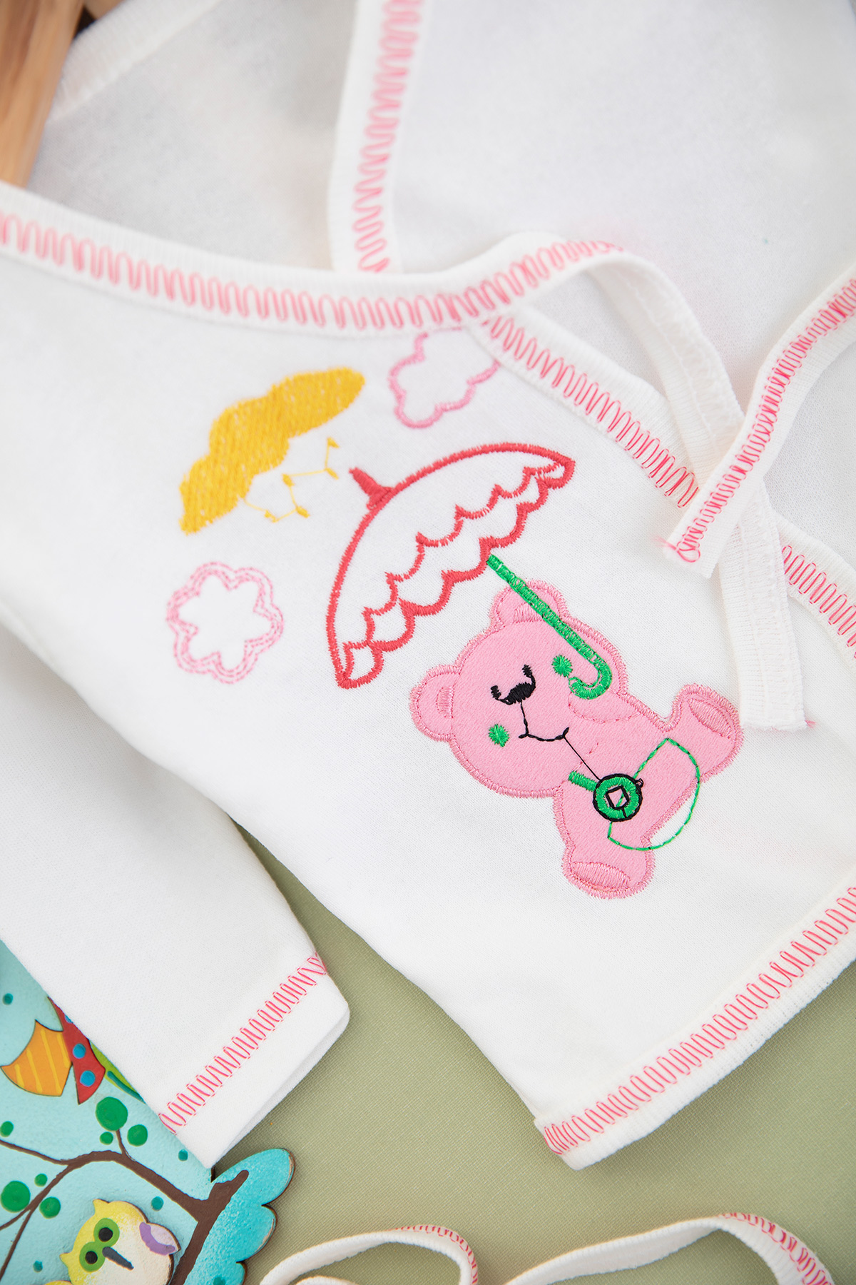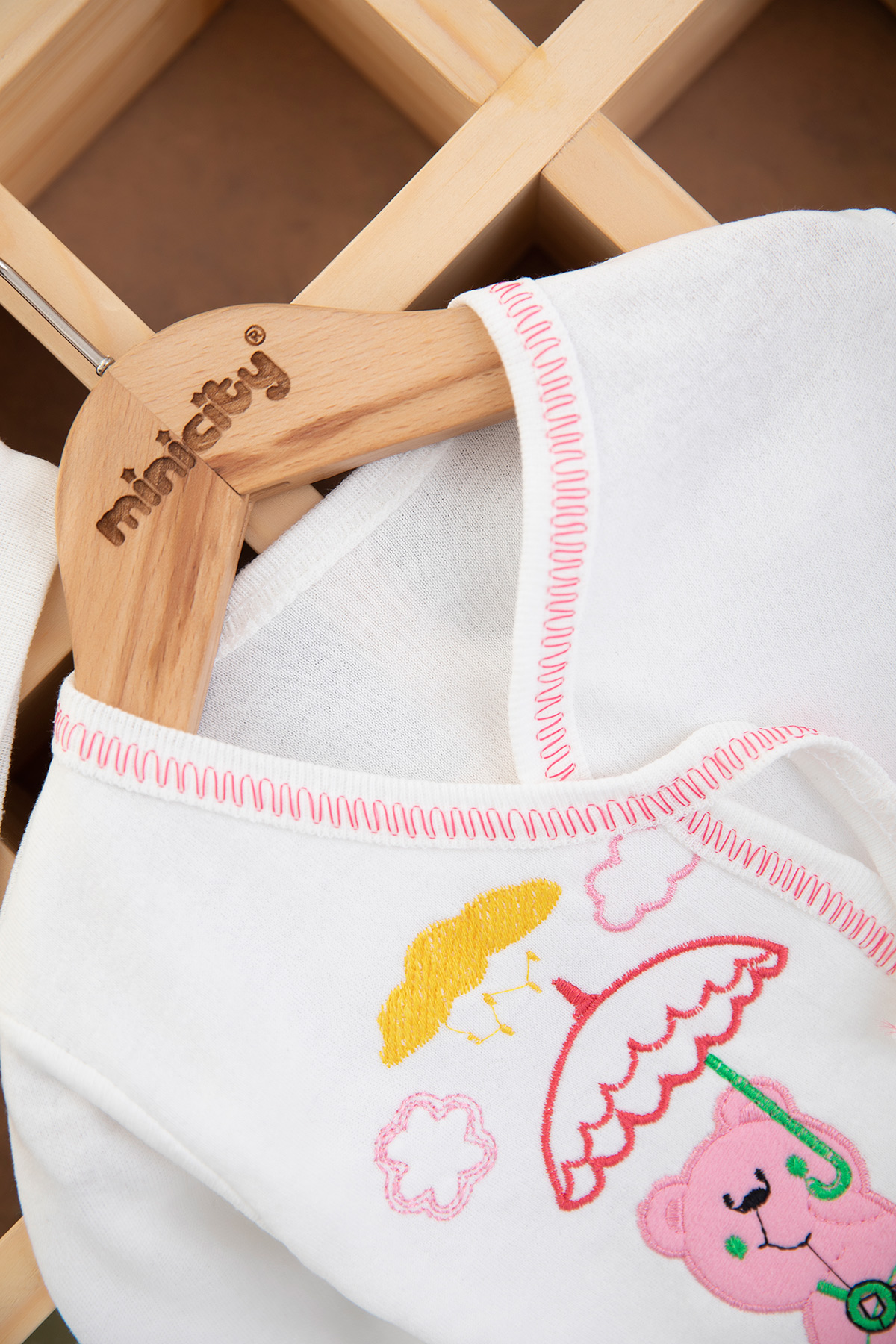 Bebek Şemsiyeli Ayıcık Nakışlı 5`Li Zıbın Seti