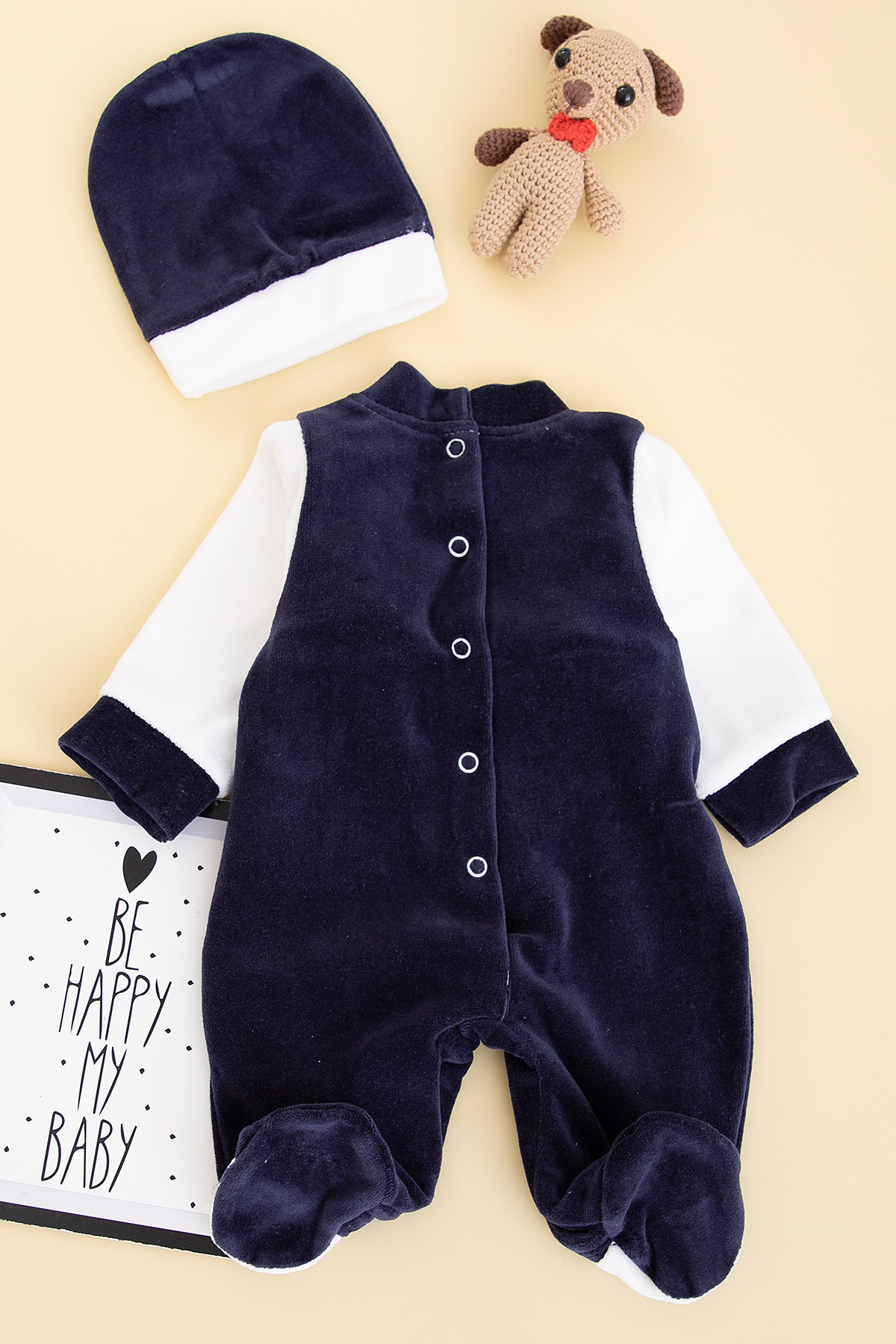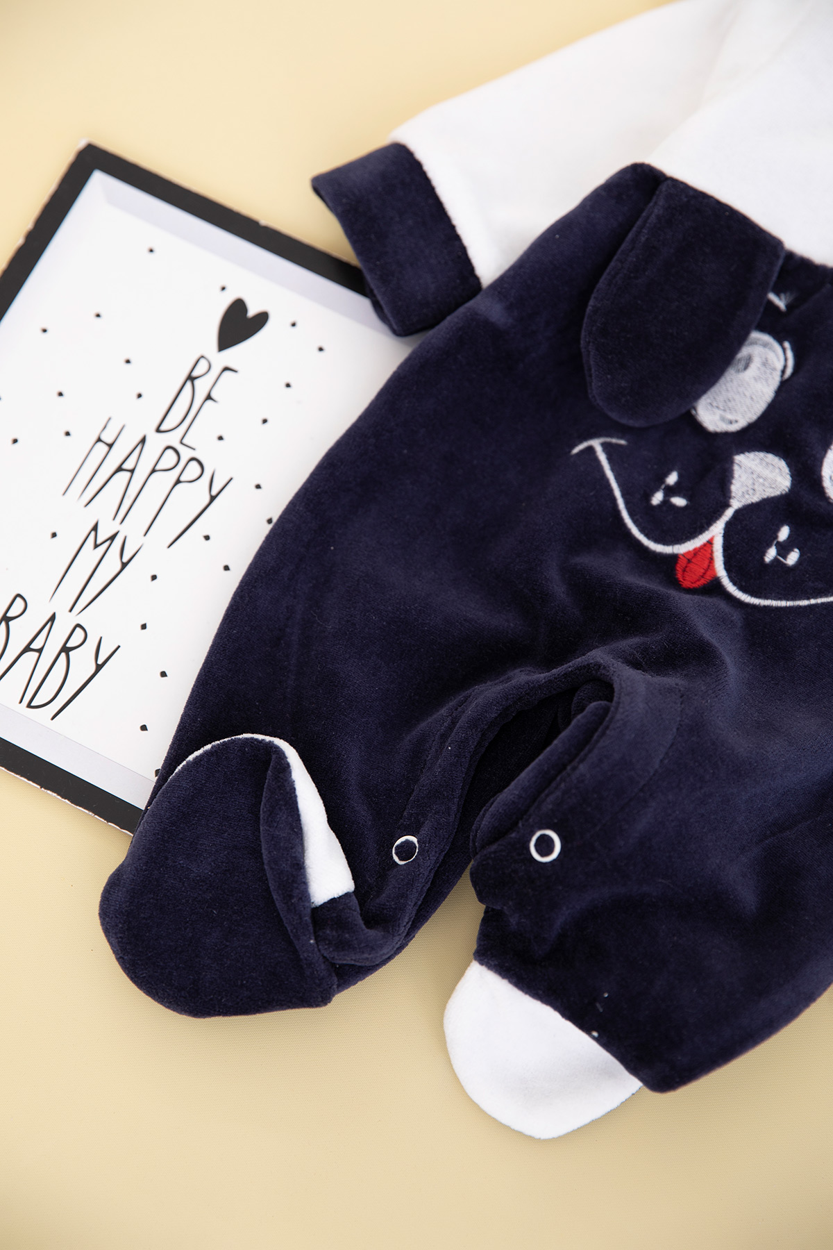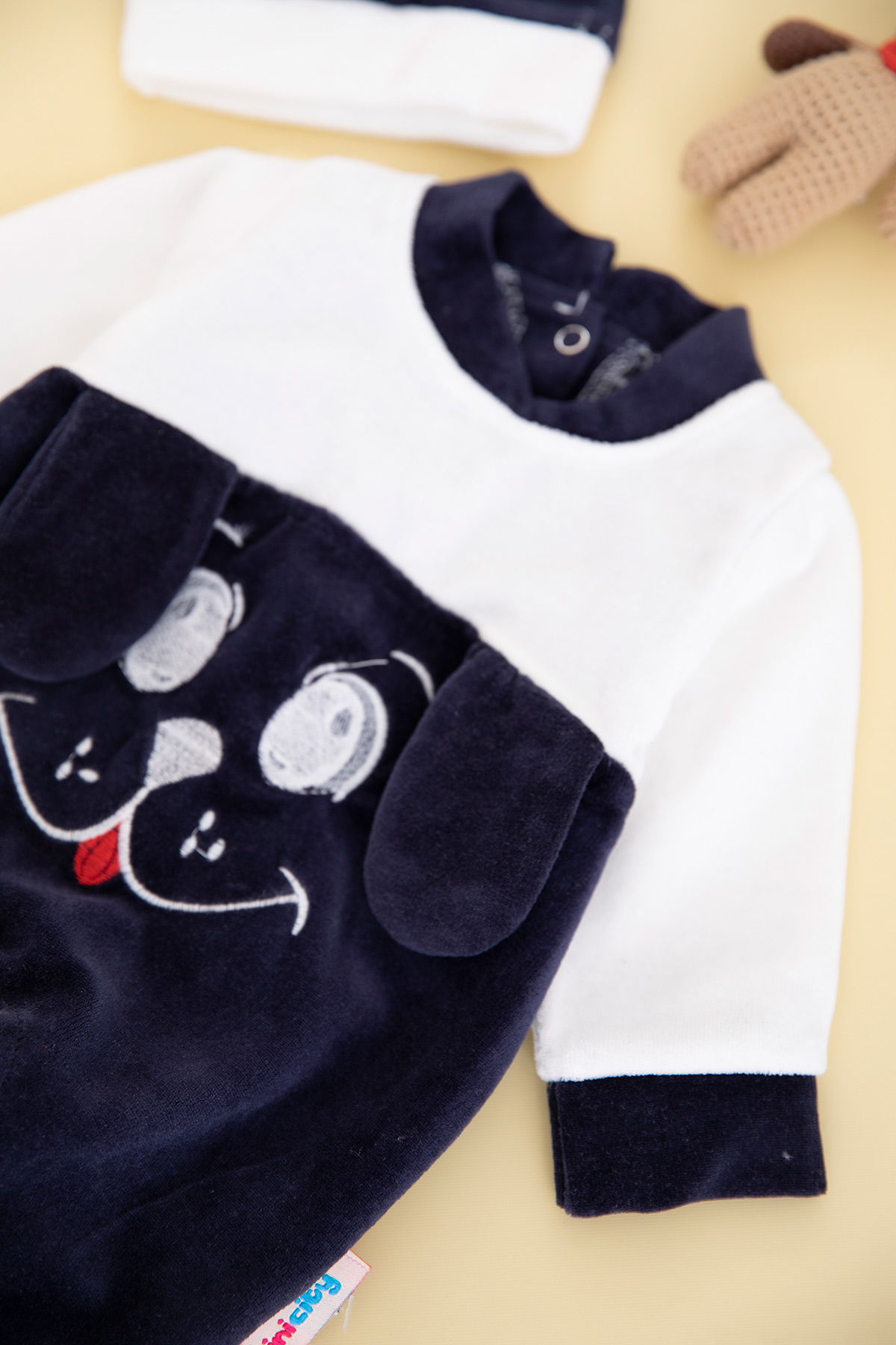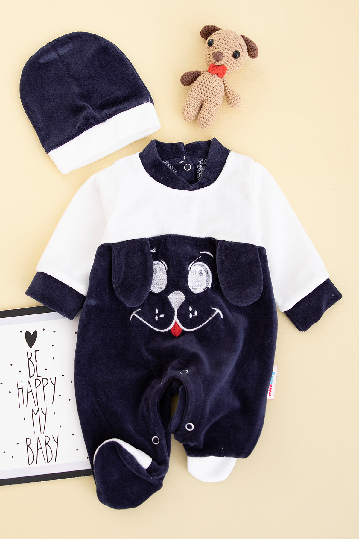Bebek Sevimli Köpek Nakışlı Kadife Tulum - 8259 (0-6 Ay)