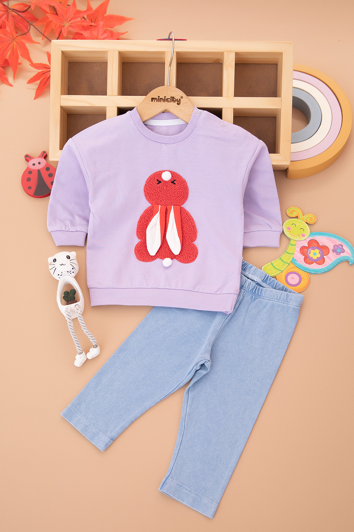 Bebek Süzene Tavşan Nakışlı Takım - 0243 (9-24 Ay)