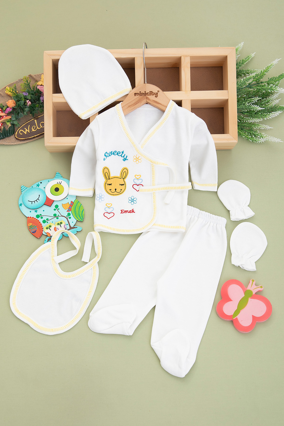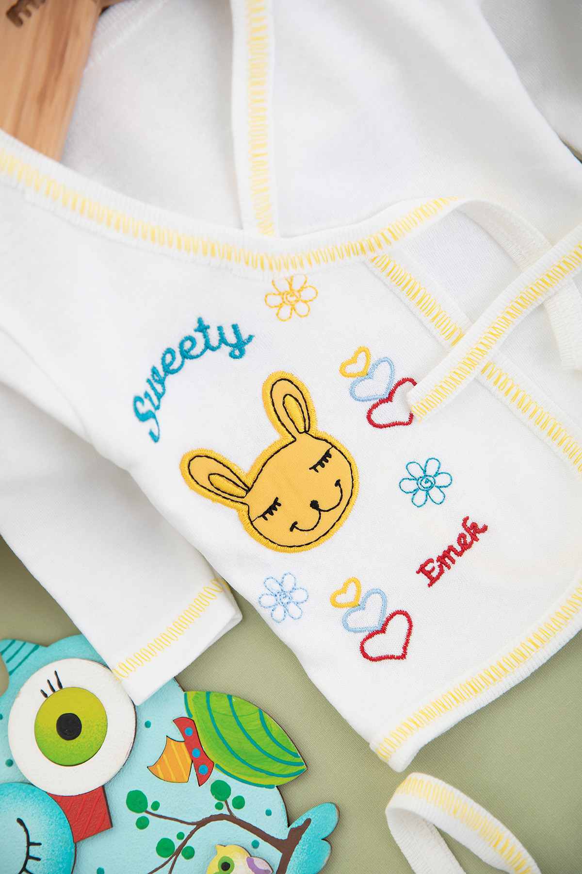 Bebek Sweety Tavşan Nakışlı 5`Li Zıbın Seti