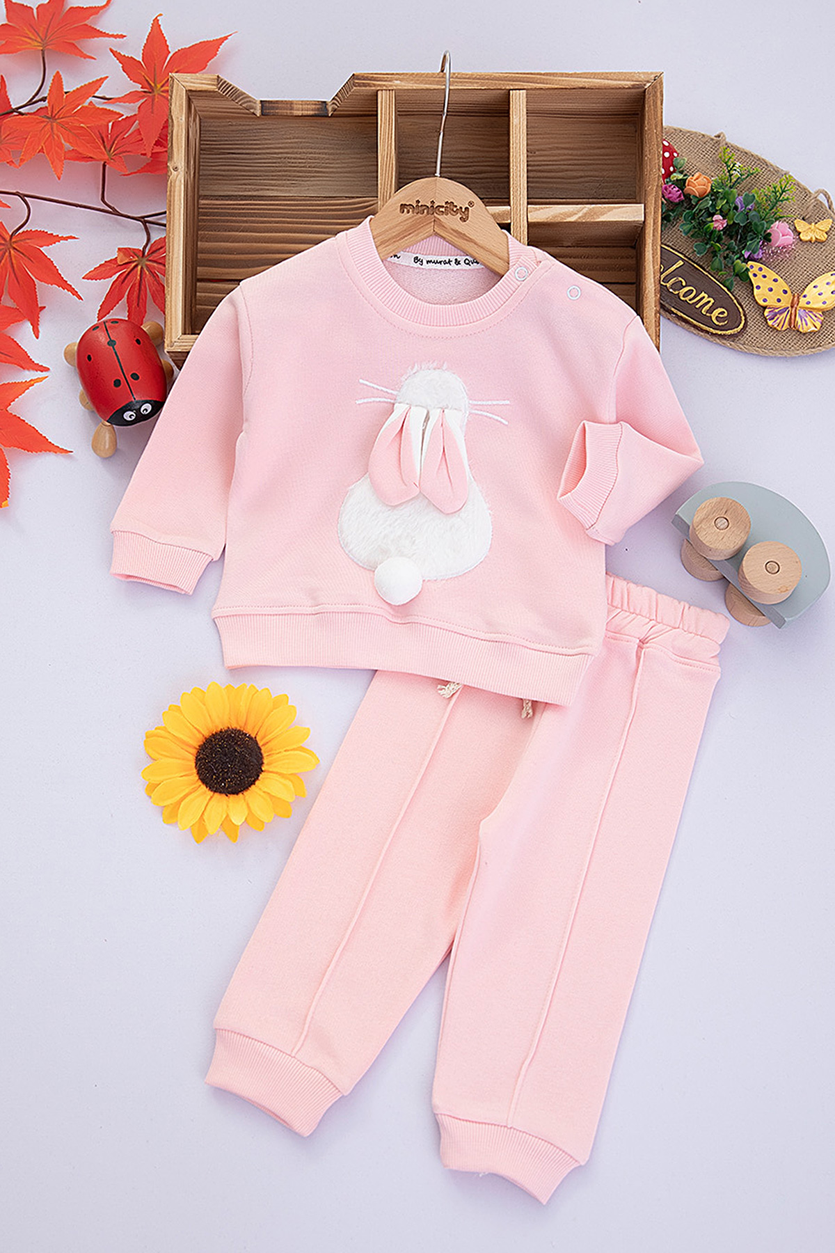 Bebek Tavşan Kulak Ponpon Üçip Takım - 8984 (9-24 Ay)