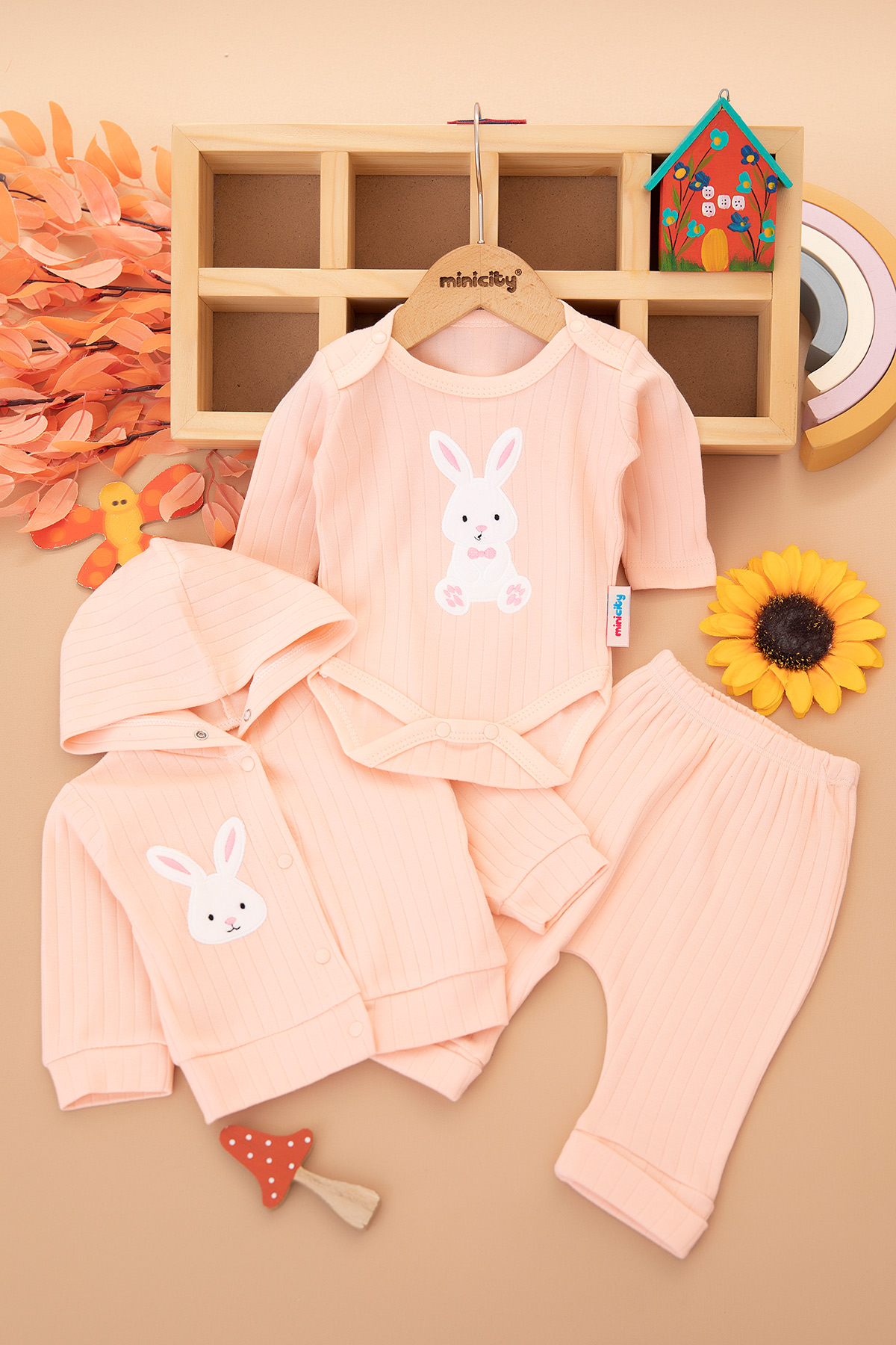 Bebek Tavşan Nakışlı Üçlü Takım - 1217 (3-9 Ay)