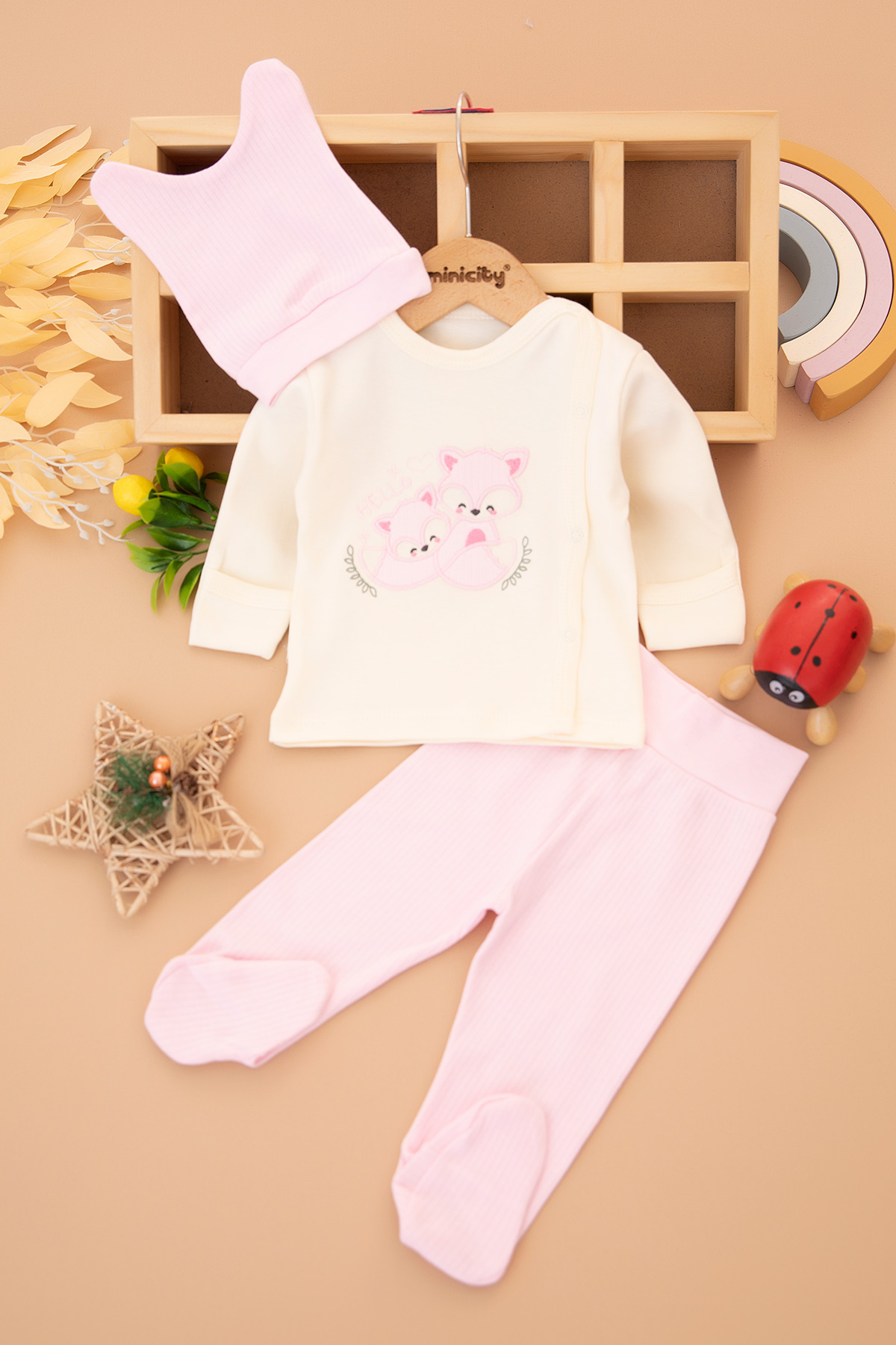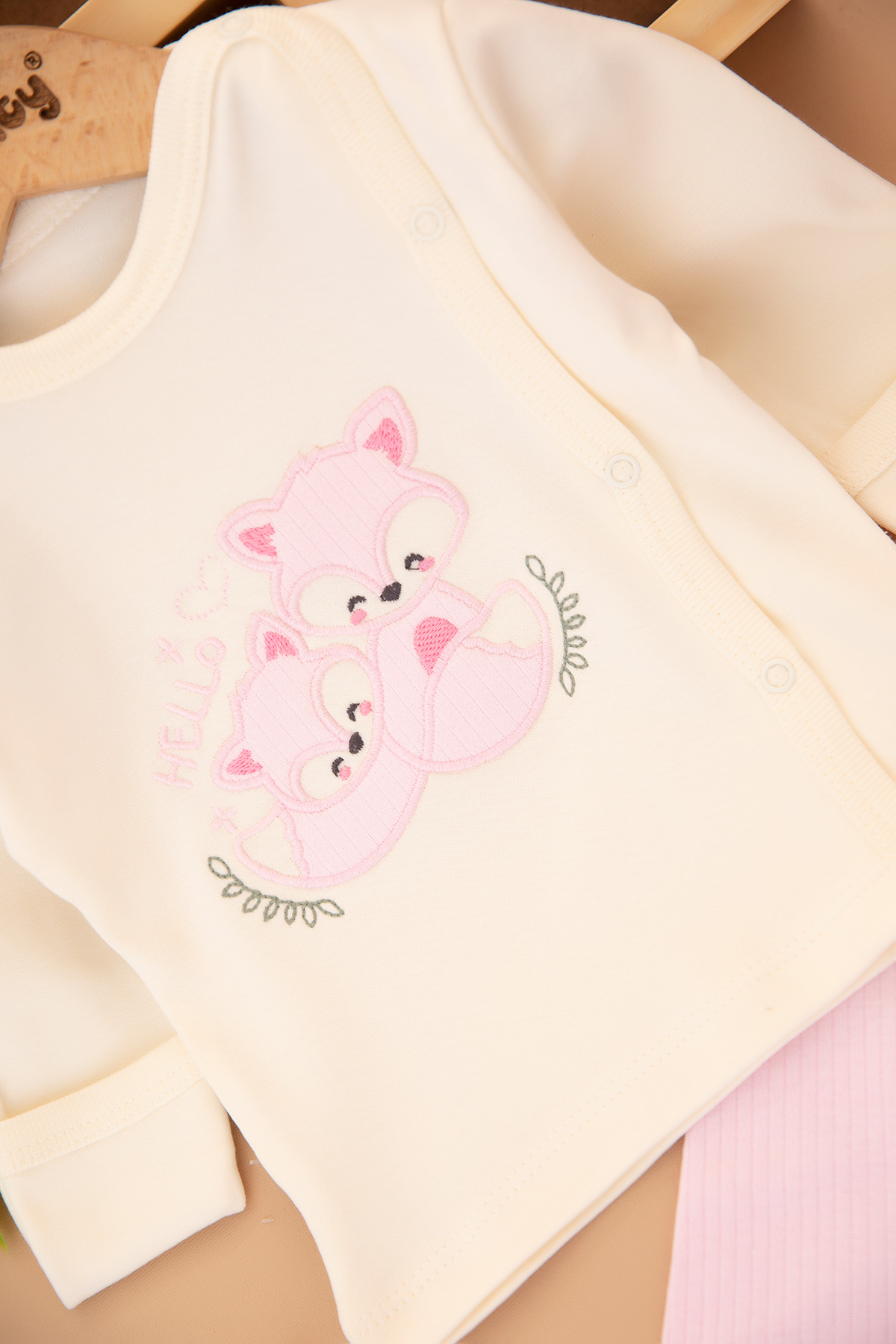 Bebek Tilki Nakışlı Zıbın Takımı - 9384 (0-3 Ay)