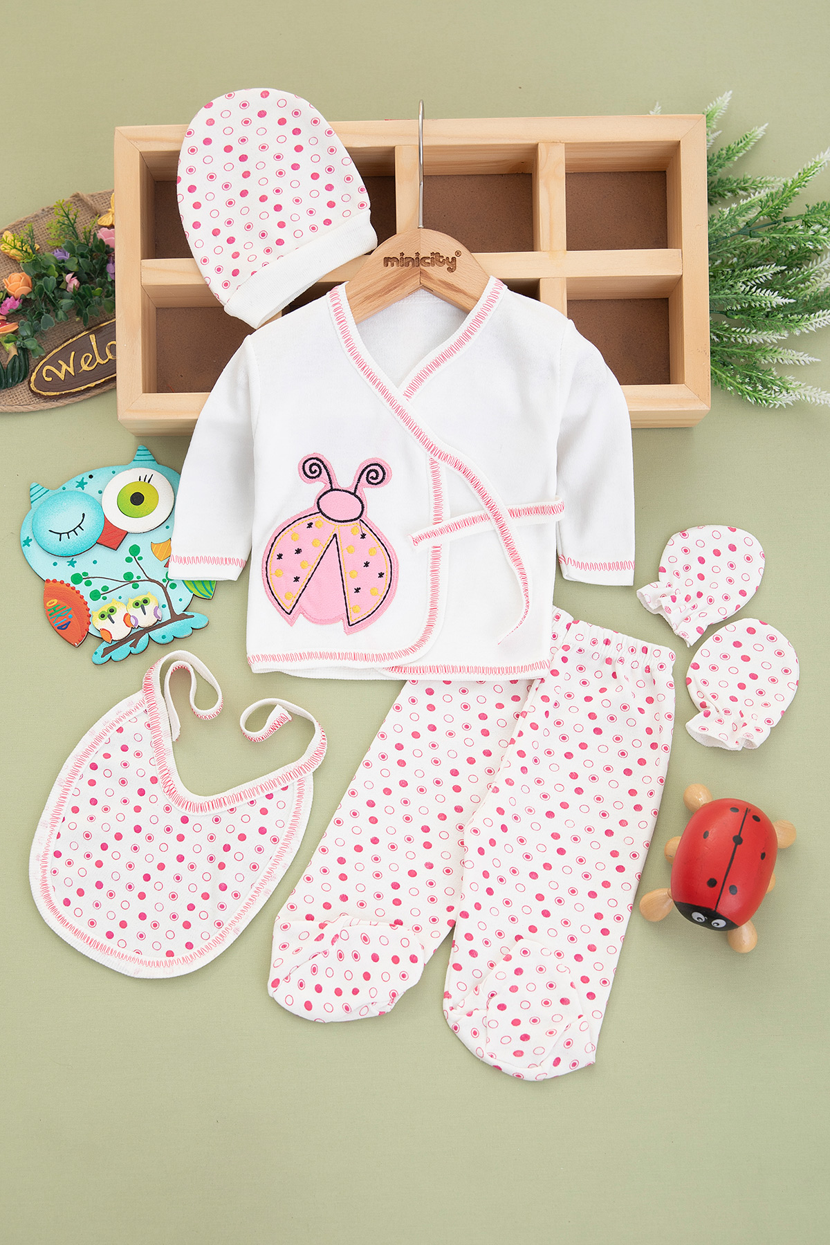 Bebek Uğurböceği Nakışlı 5`Li Zıbın Seti