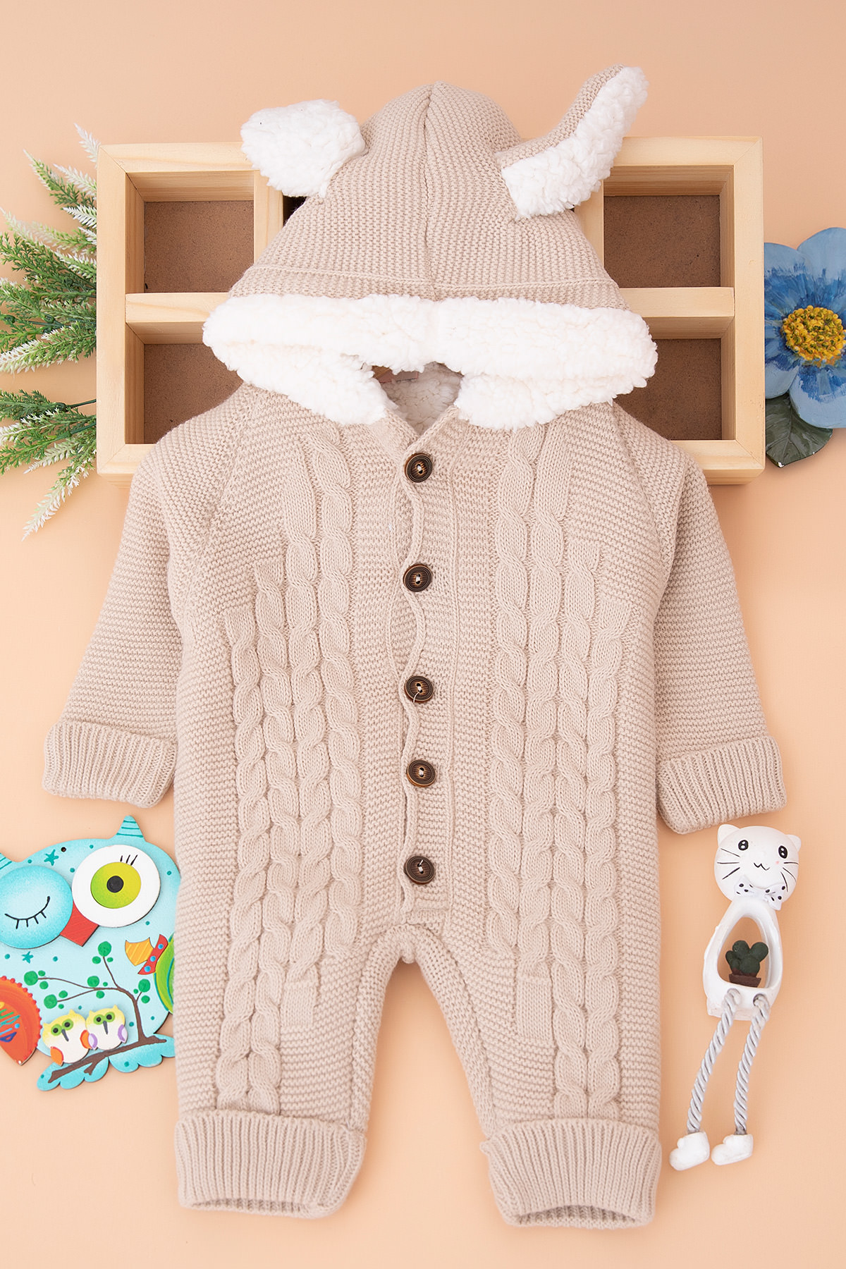 Bebek Welsoflu Kapşonlu Triko Tulum - 600 (6-24 Ay)
