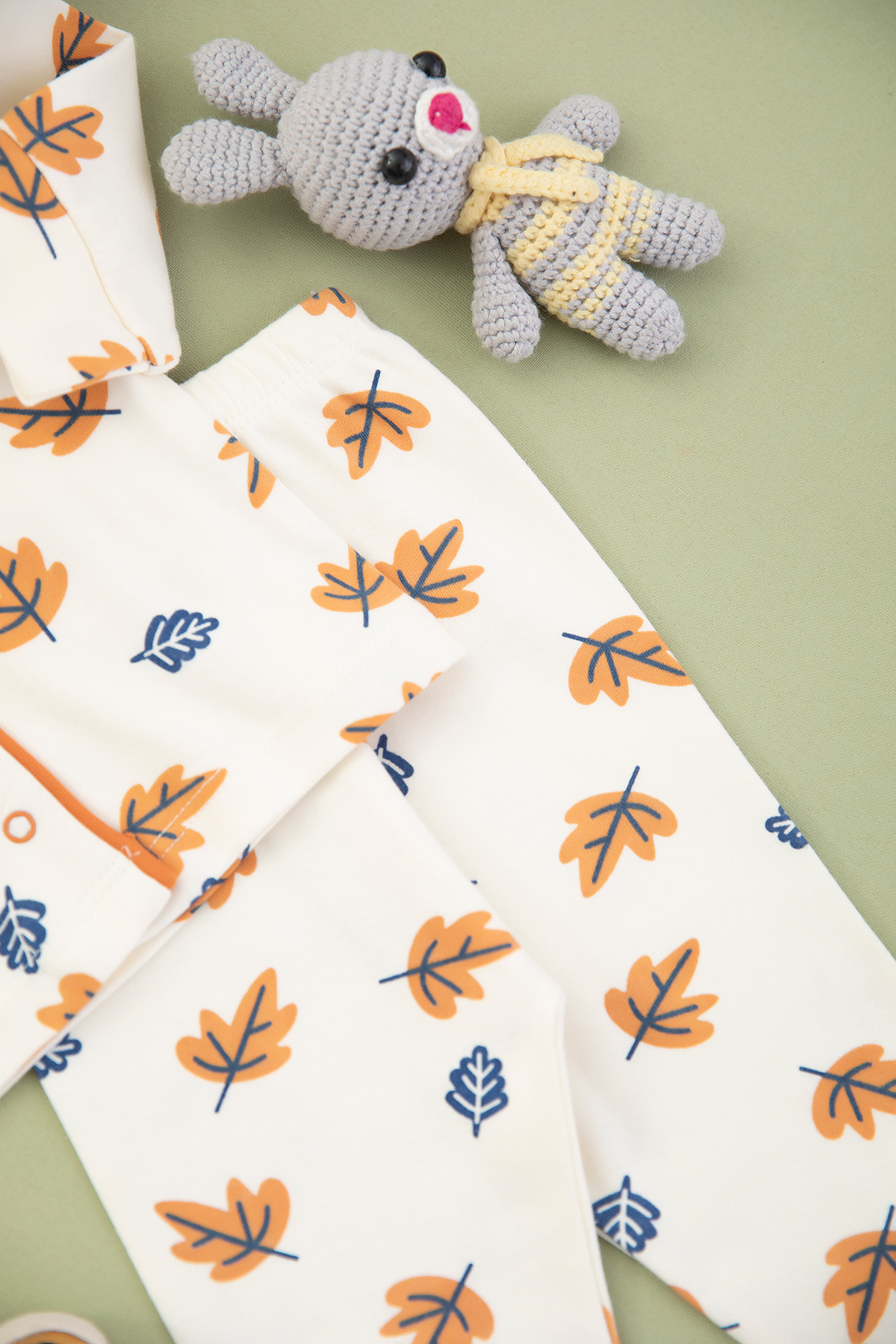 Bebek Yaprak Baskılı Pijama Takım - 2411 (3-12 Ay)