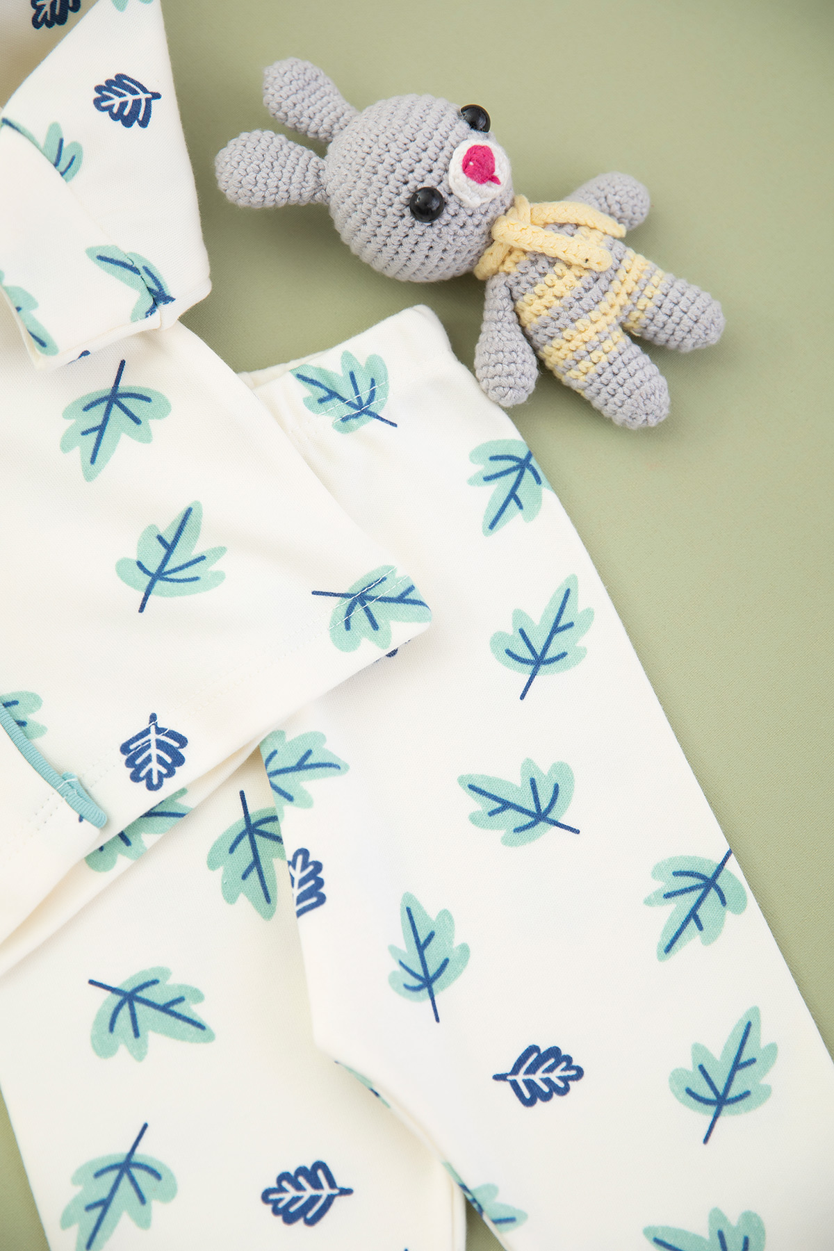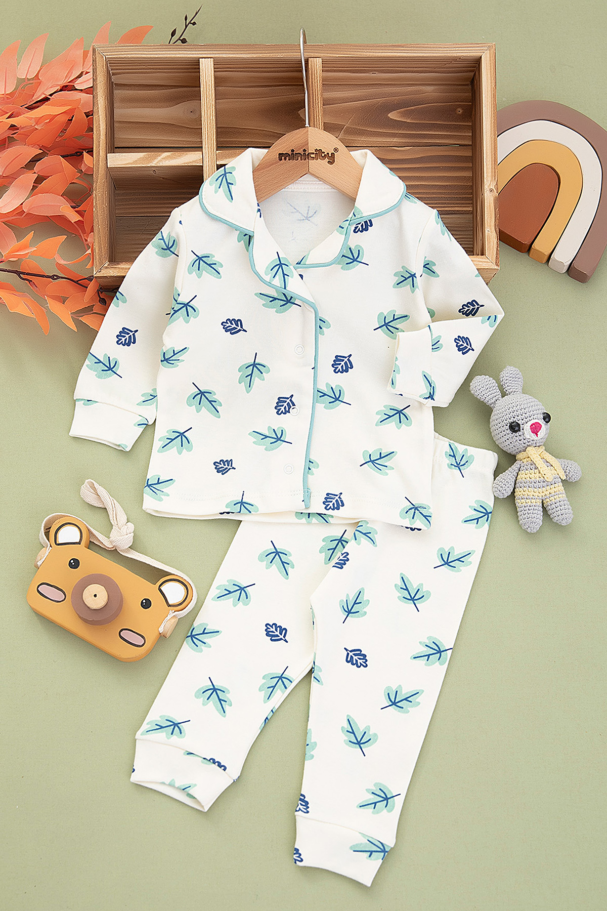 Bebek Yaprak Baskılı Pijama Takım - 2411 (3-12 Ay)