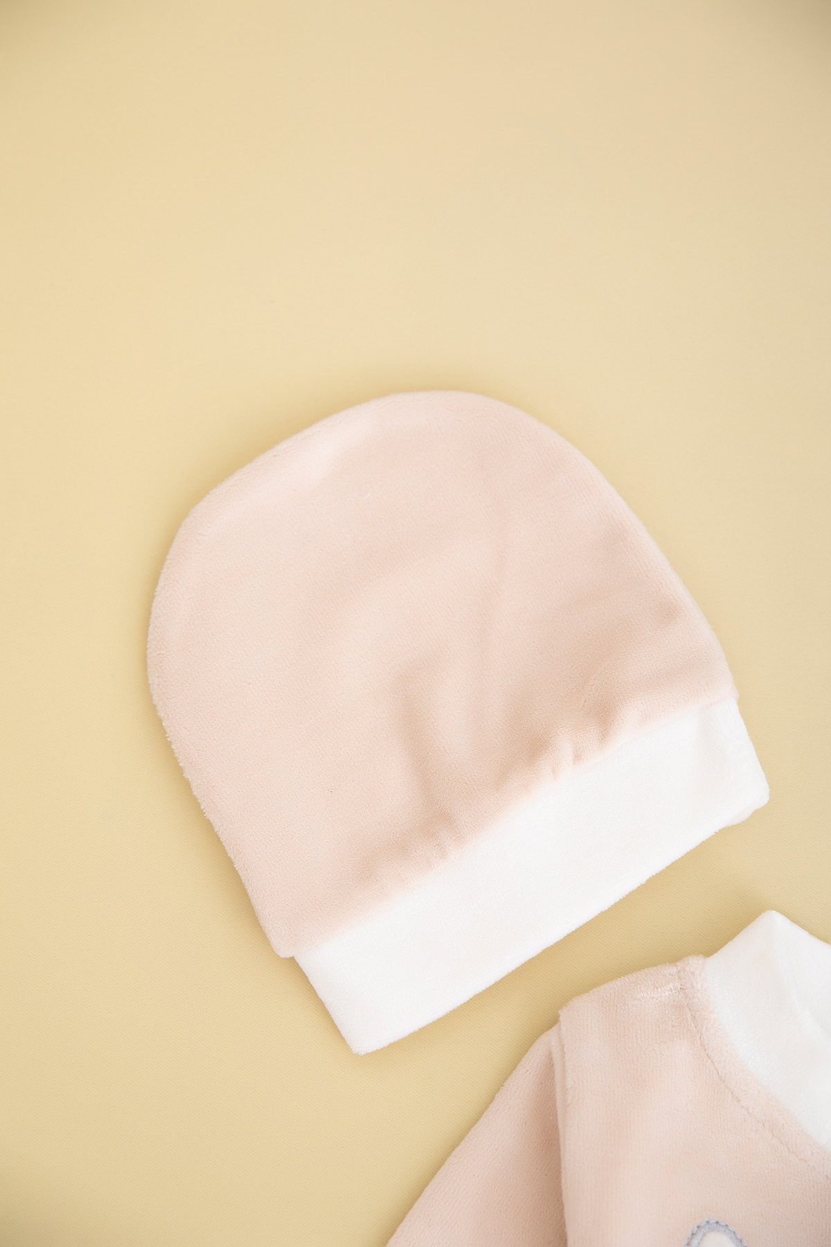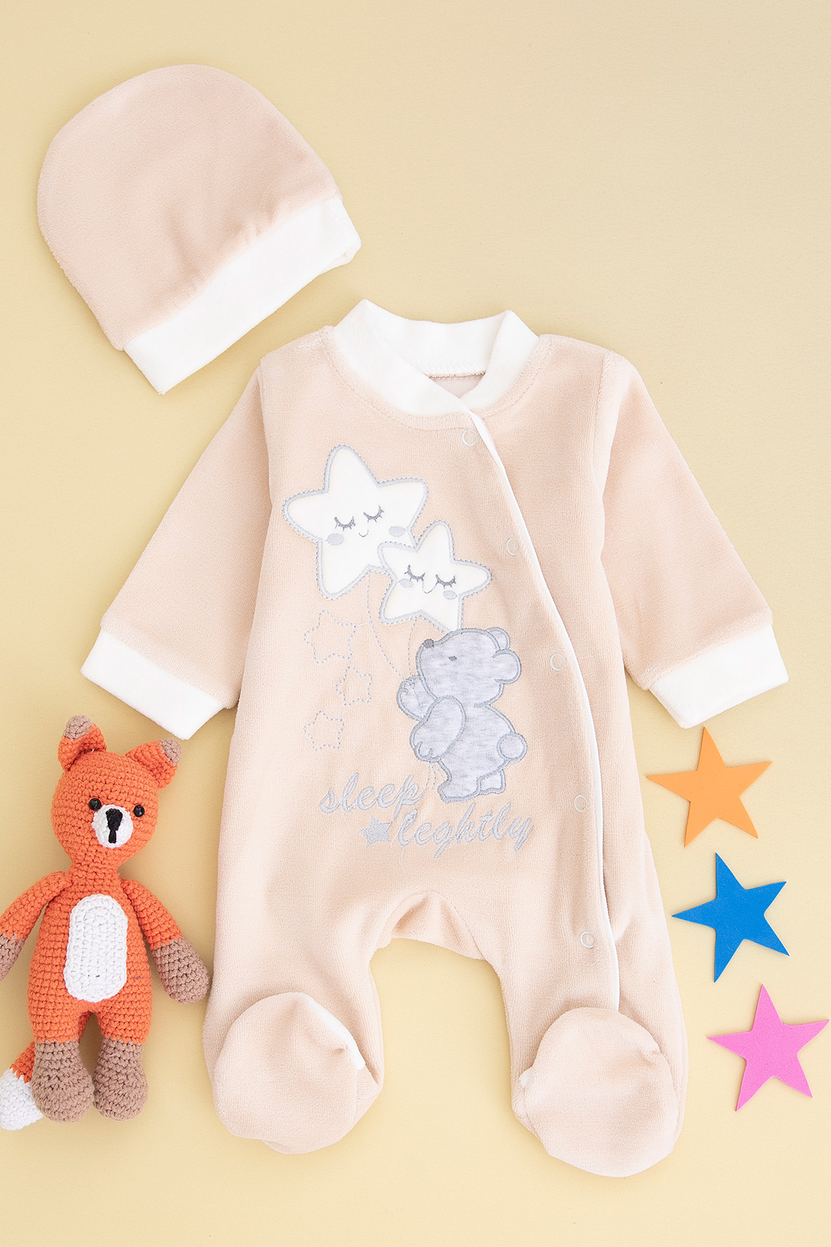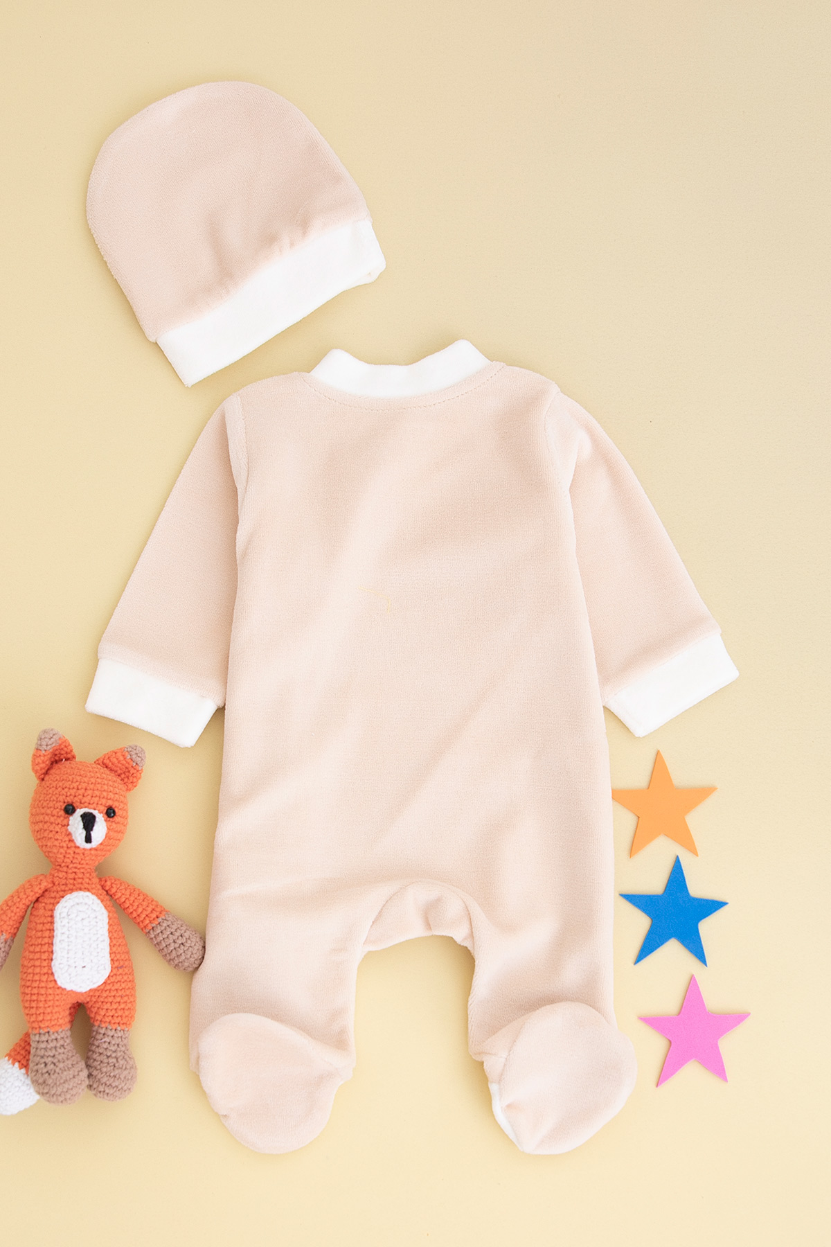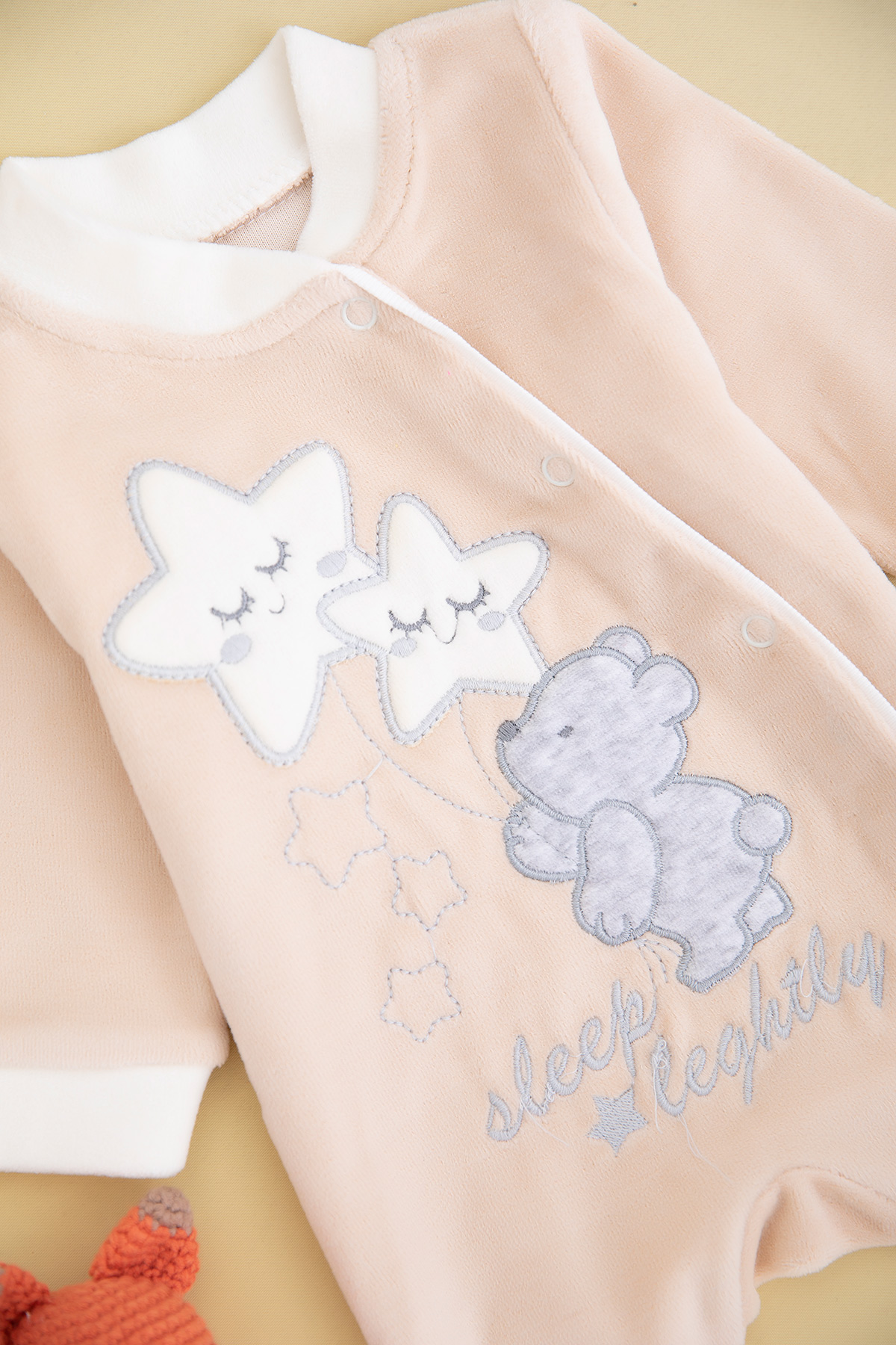 Bebek Yıldızlı Ayı Nakışlı Kadife Tulum - 8246 (0-6 Ay)