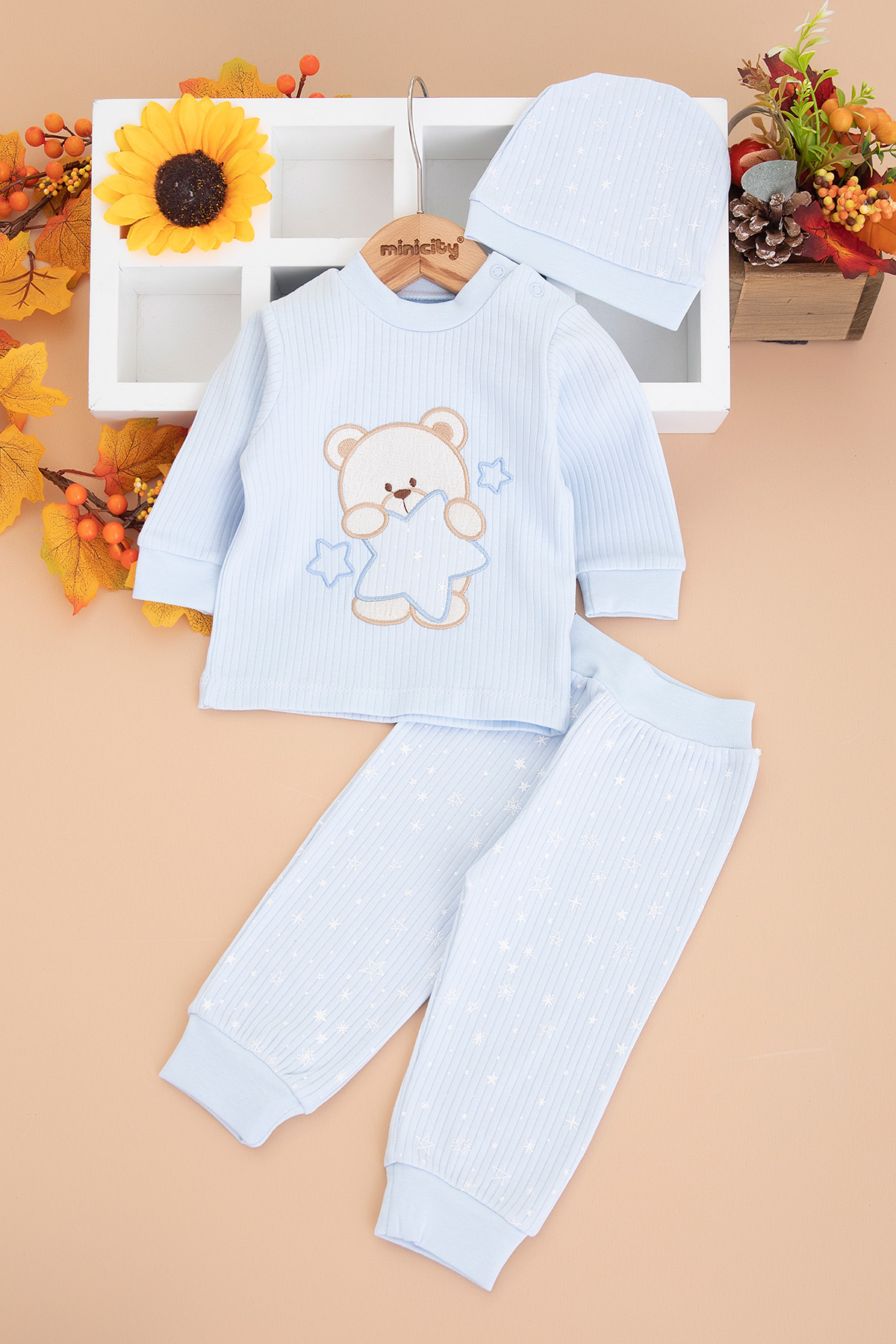 Bebek Yıldızlı Ayı Nakışlı Zıbın Takımı - 2211 (3-9 Ay)