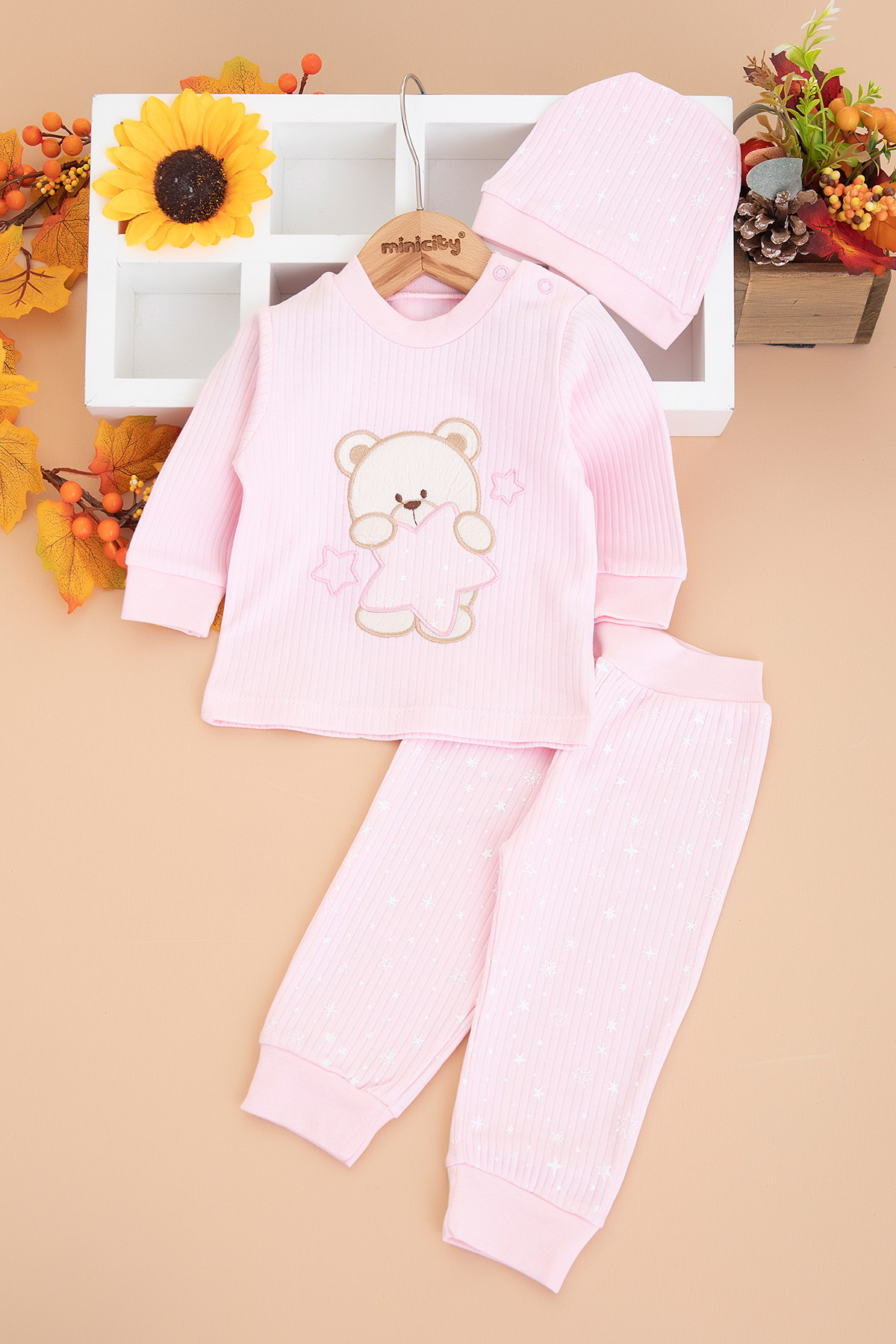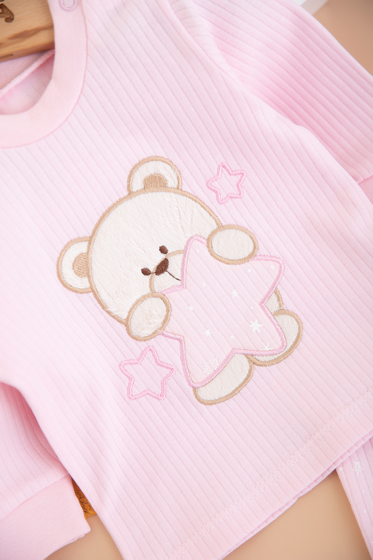 Bebek Yıldızlı Ayı Nakışlı Zıbın Takımı - 2211 (3-9 Ay)