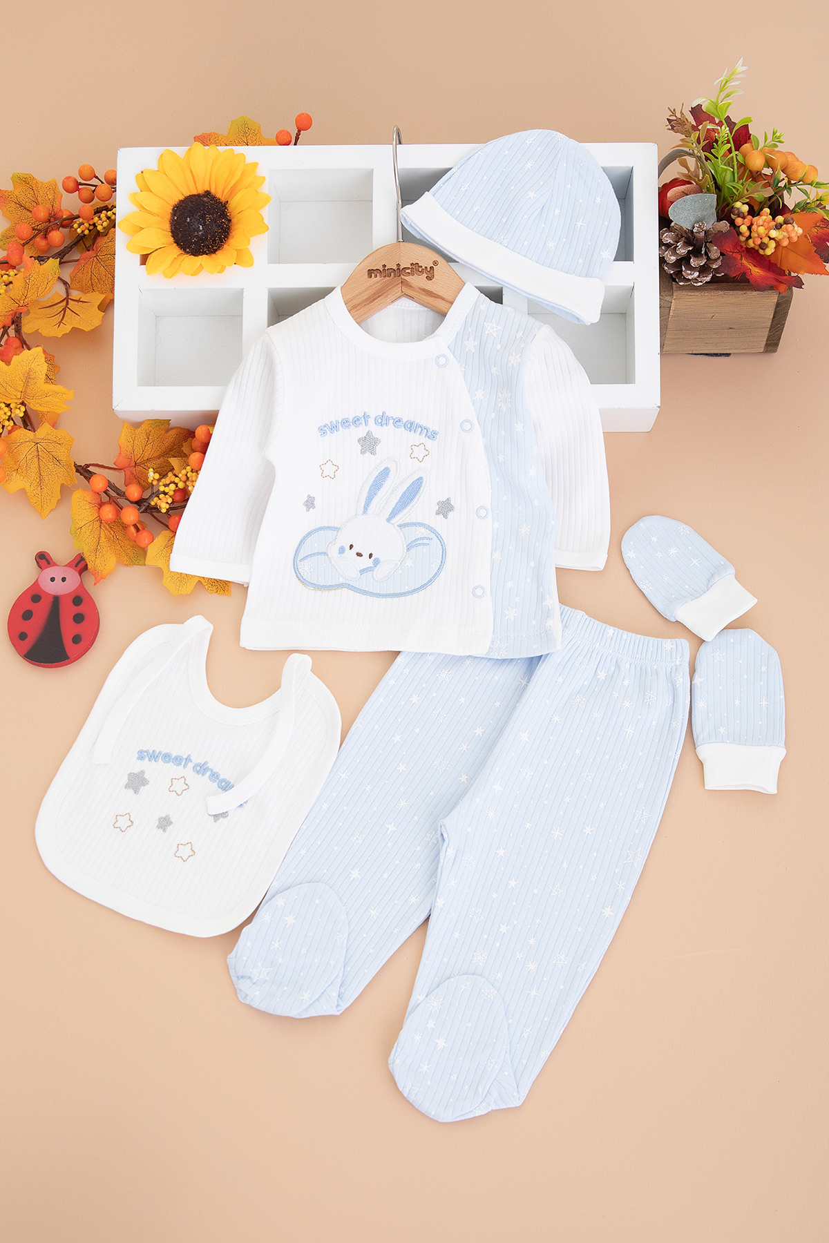 Bebek Yıldızlı Tavşan 5`Li Zıbın Seti - 1014 (0-3 Ay)