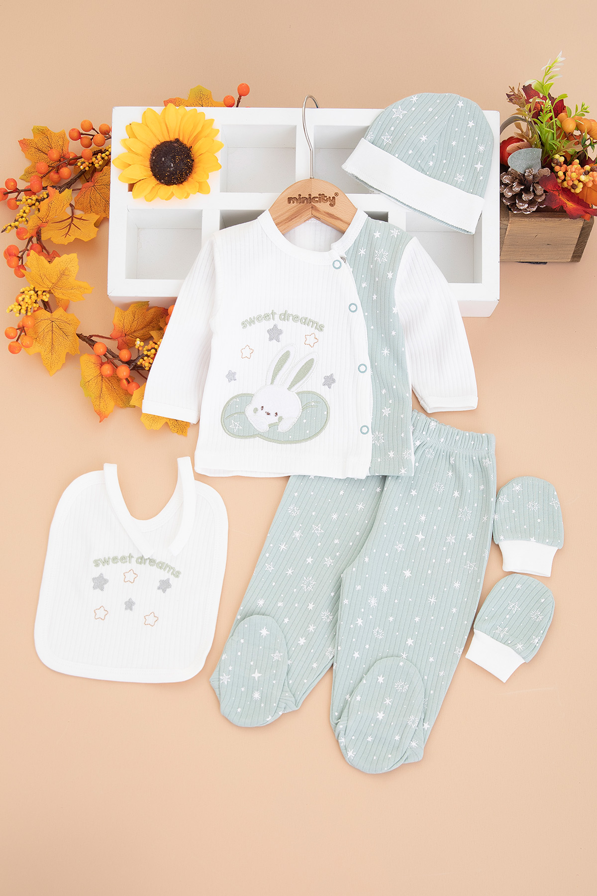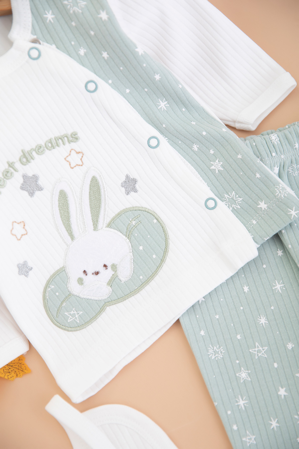 Bebek Yıldızlı Tavşan 5`Li Zıbın Seti - 1014 (0-3 Ay)