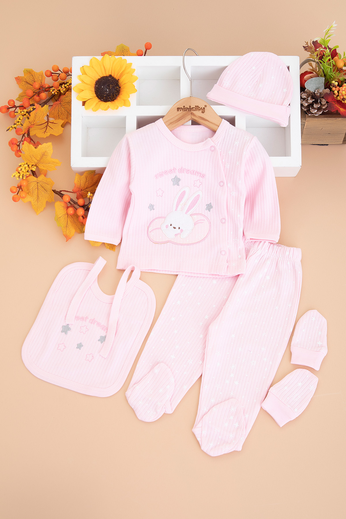 Bebek Yıldızlı Tavşan 5`Li Zıbın Seti - 1014 (0-3 Ay)