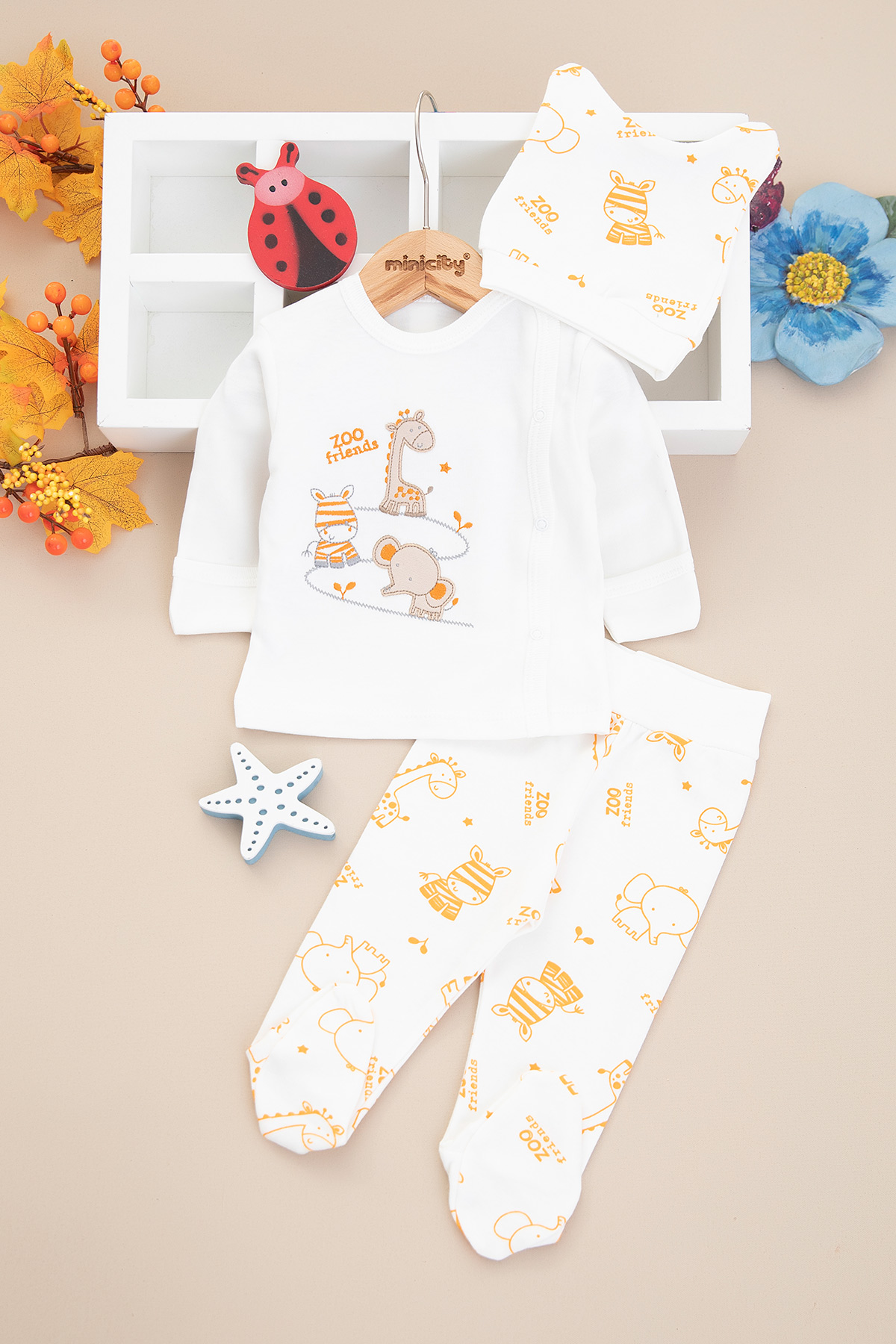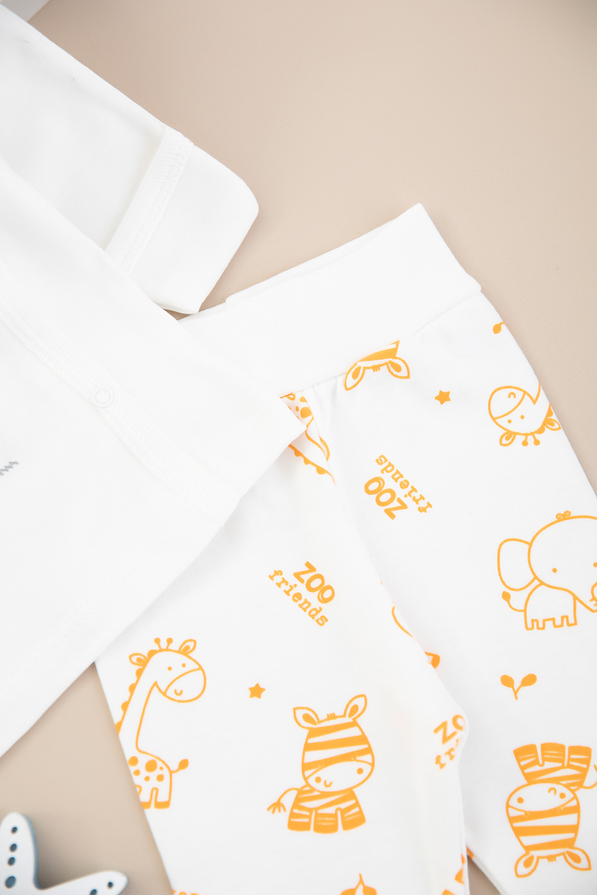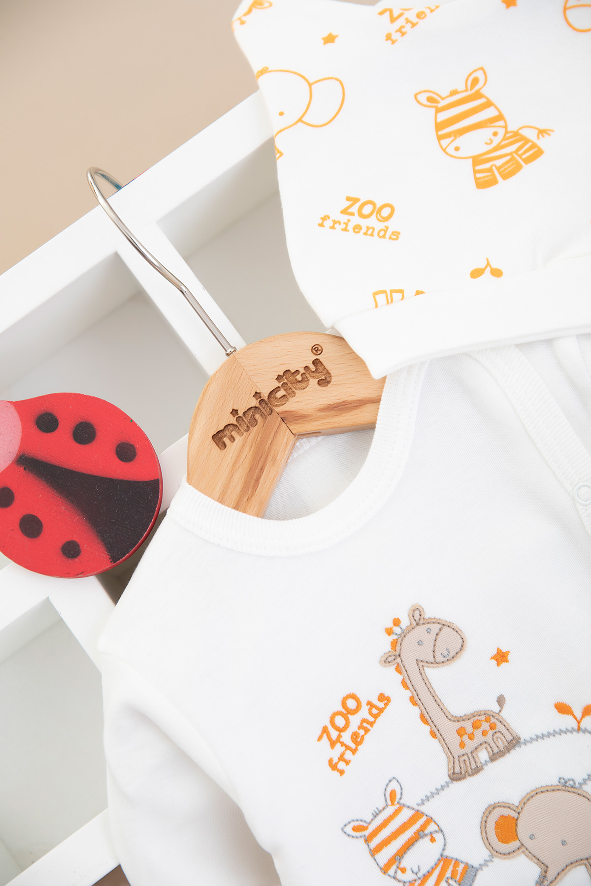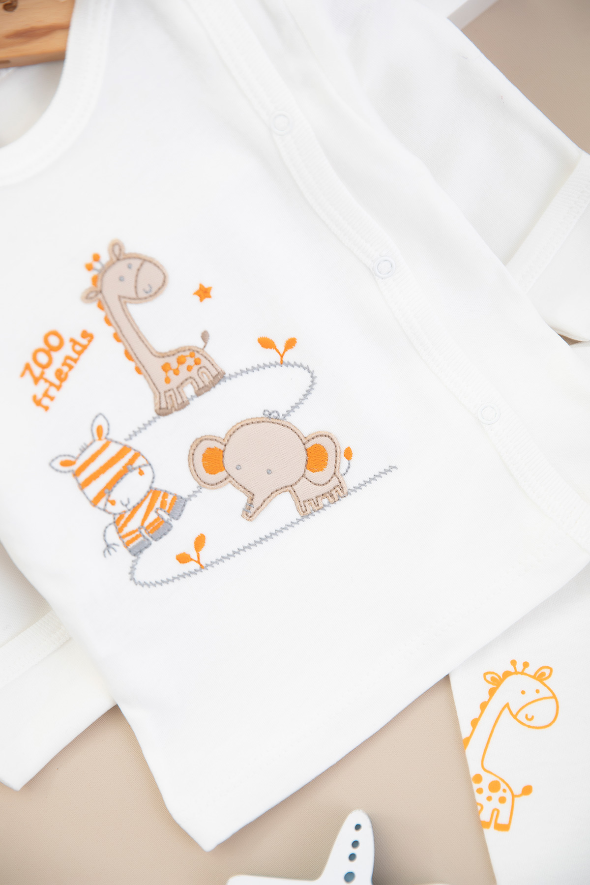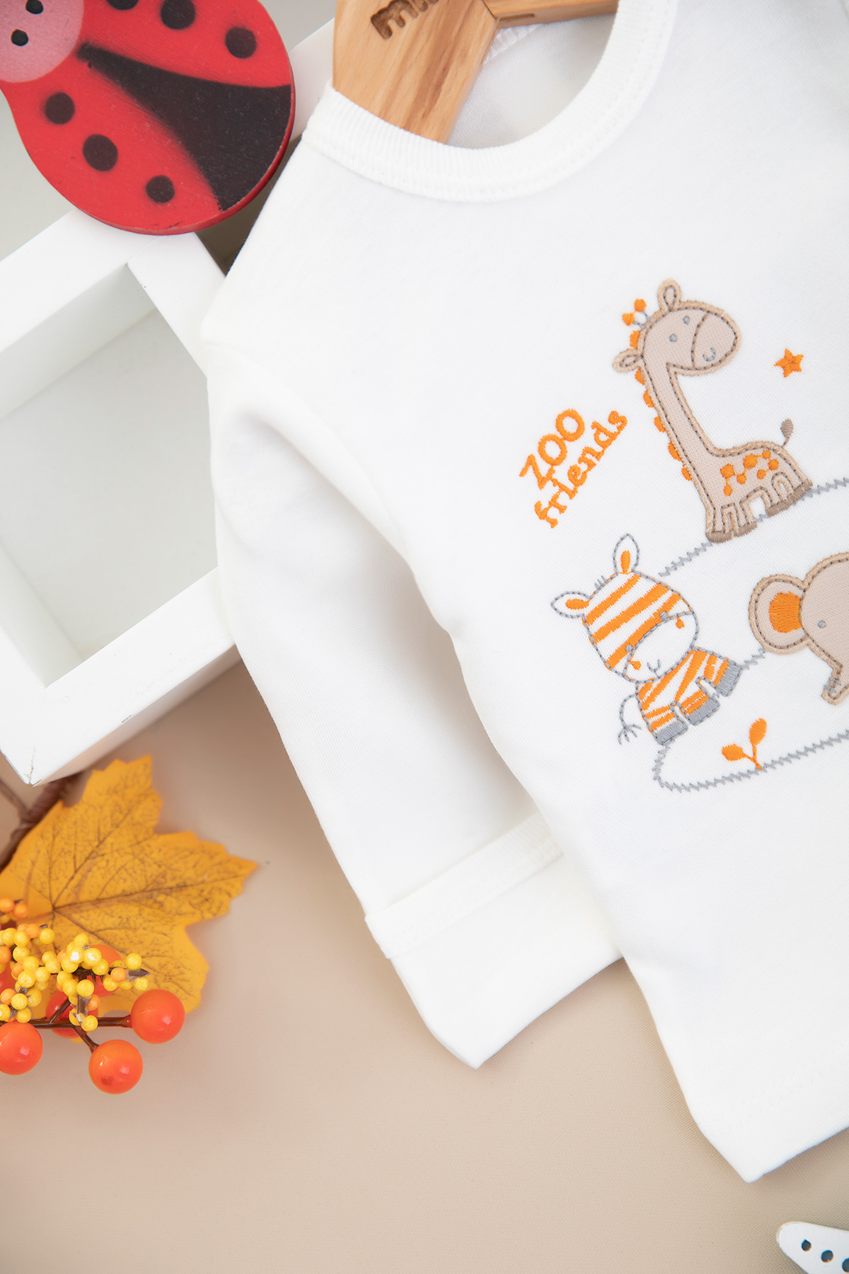 Bebek Zürafa Fil Nakışlı Zıbın Takımı - 9425 (0-3 Ay)
