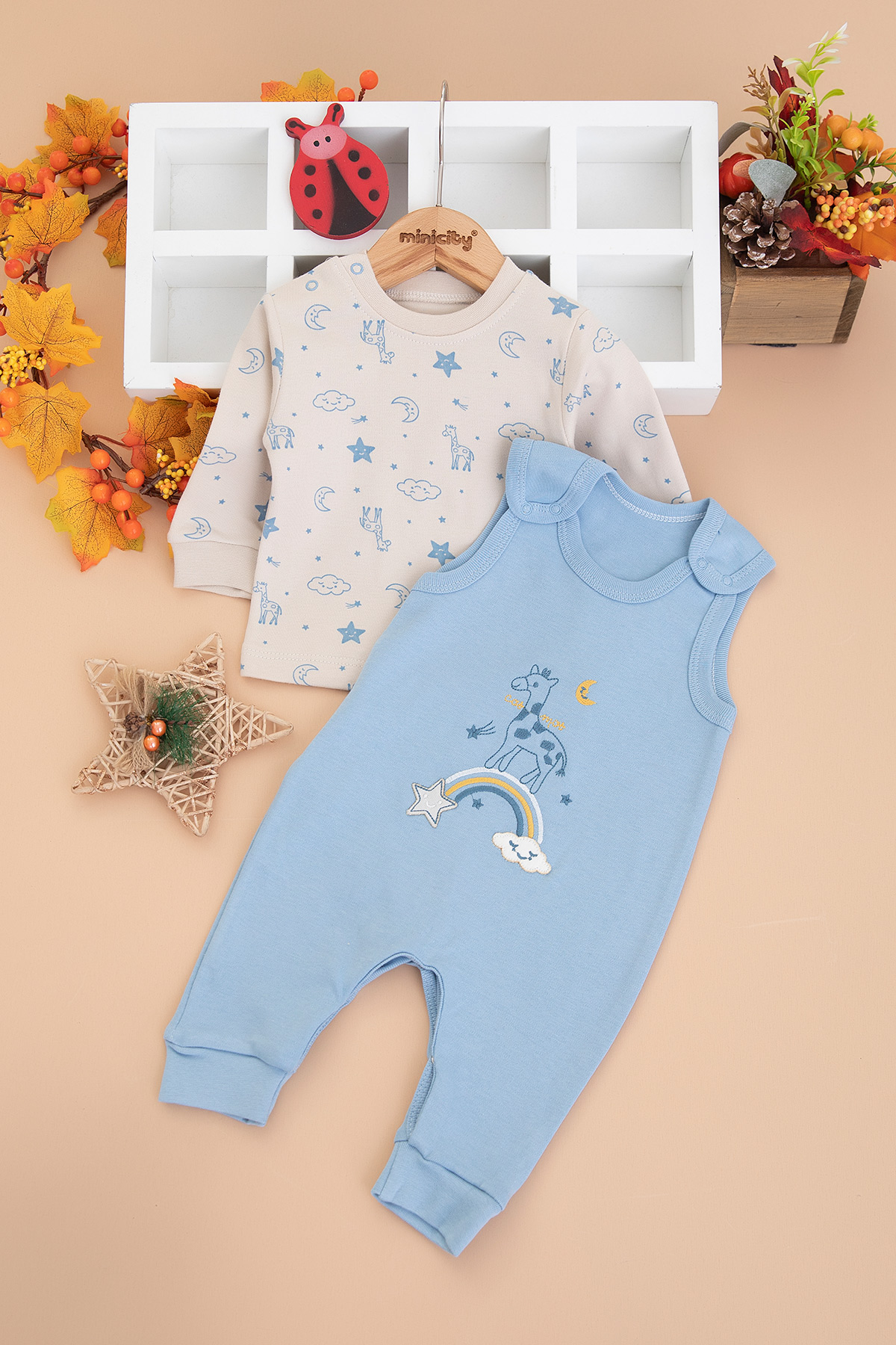 Bebek Zürafa Nakışlı Salopet Takım - 3011 (3-12 Ay)