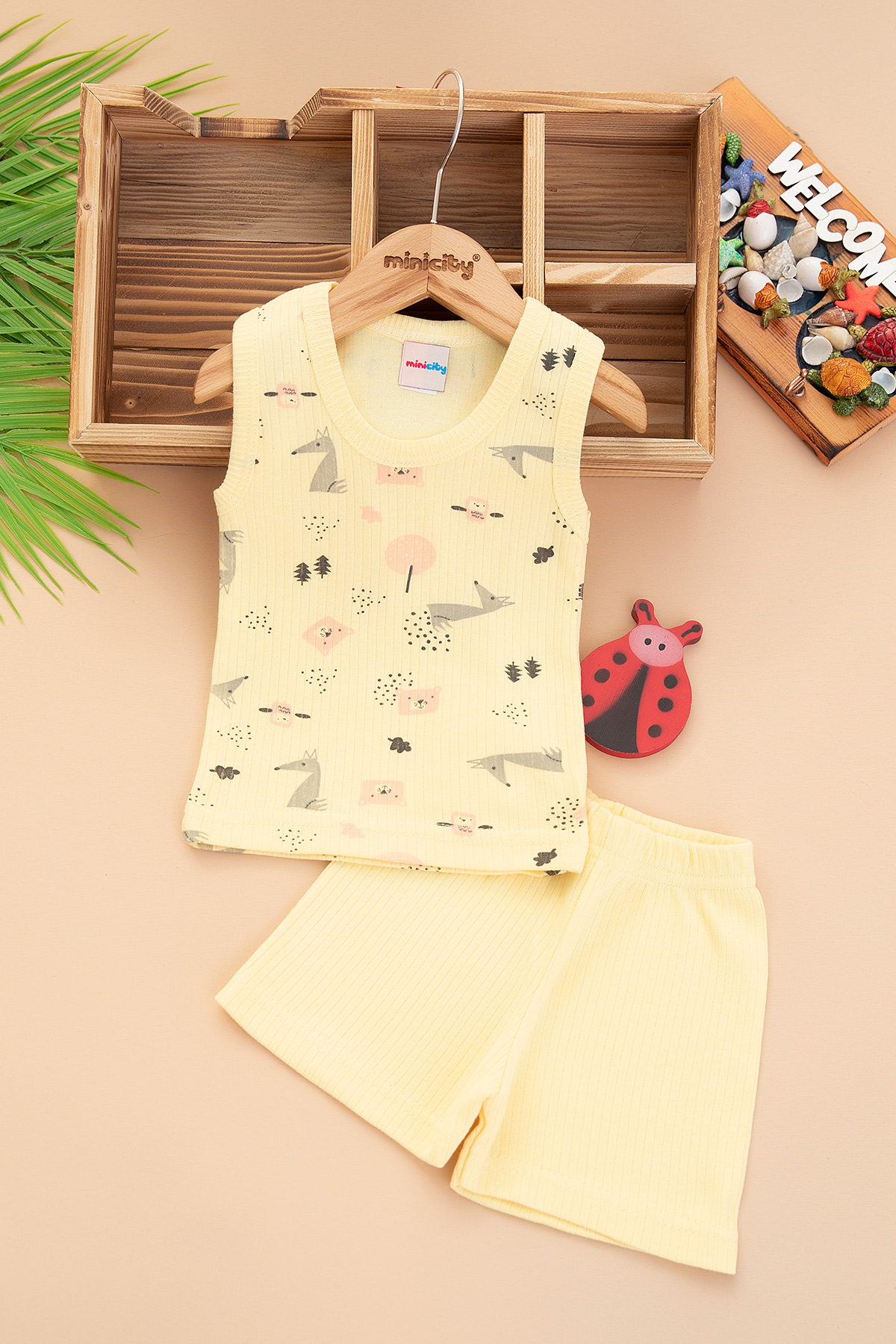 Çocuk Askılı Raporlu Baskılı Şortlu Takım - 8177 (1-4 Yaş)