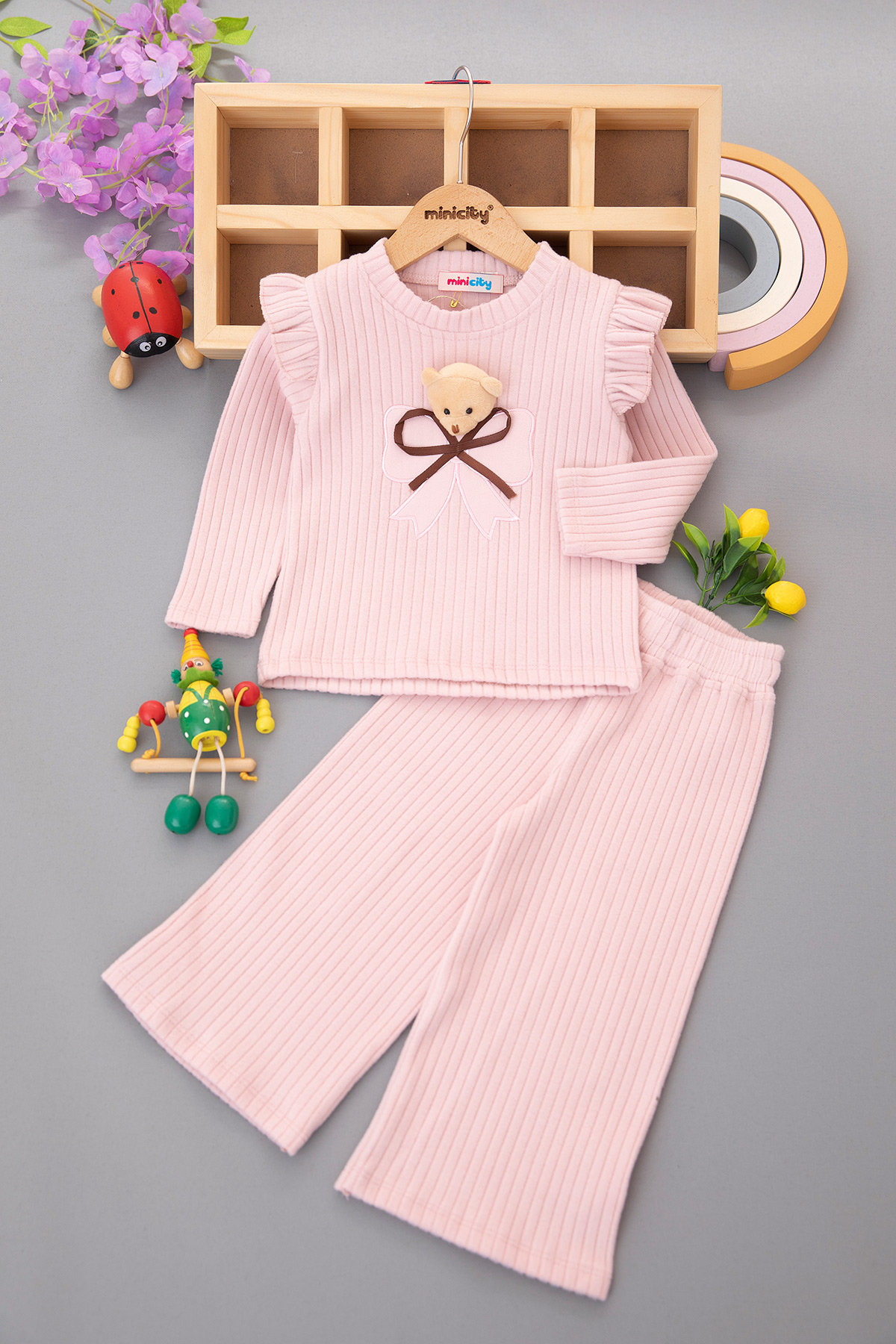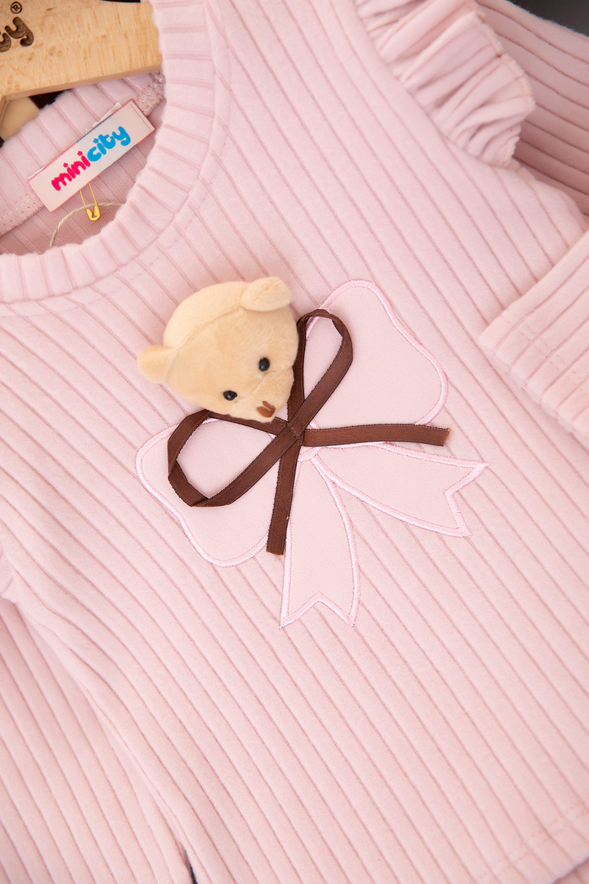 Çocuk Ayıcık Kurdela Nakışlı Fitilli Takım - 6205 (2-5 Yaş)