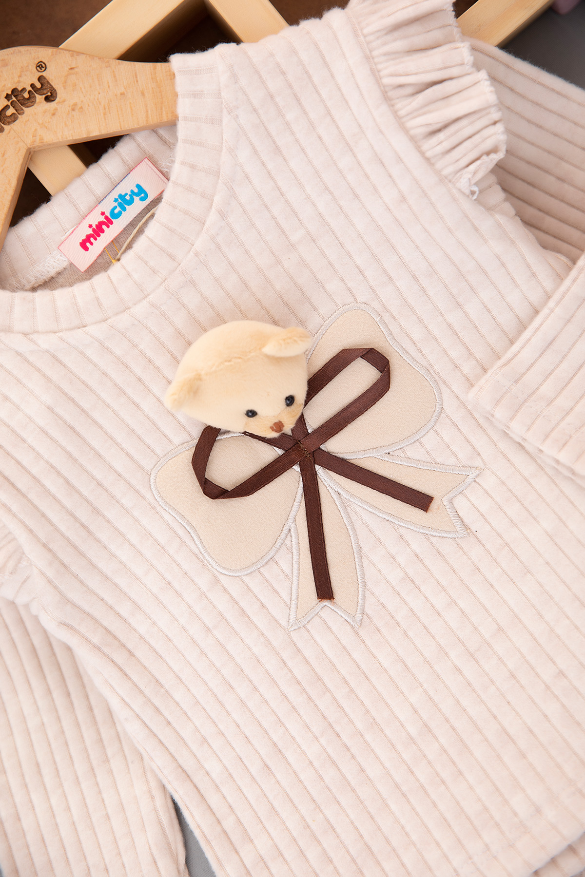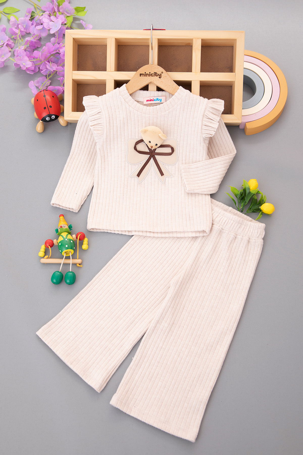 Çocuk Ayıcık Kurdela Nakışlı Fitilli Takım - 6205 (2-5 Yaş)