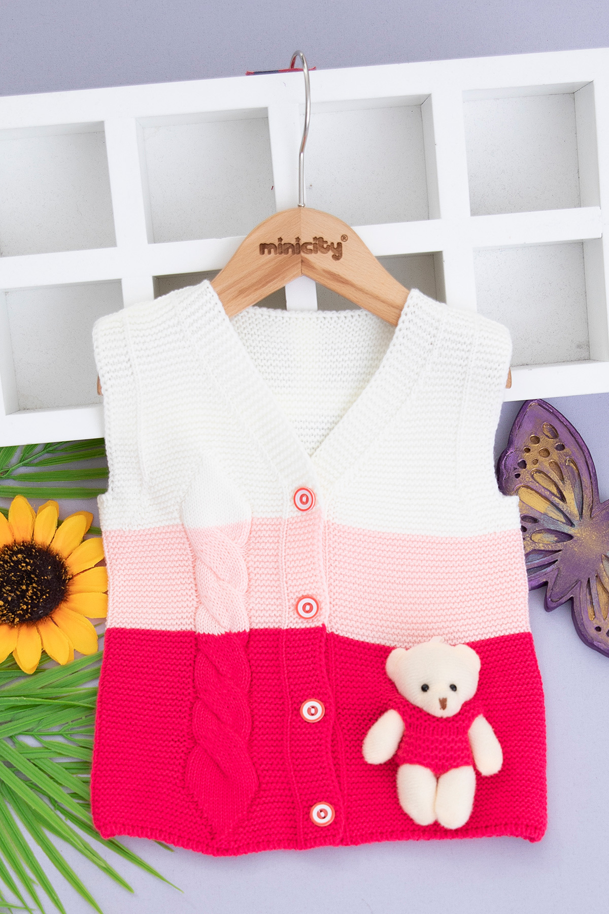 Çocuk Ayıcıklı Triko Yelek - 0493 - 0492 (1-5 Yaş)