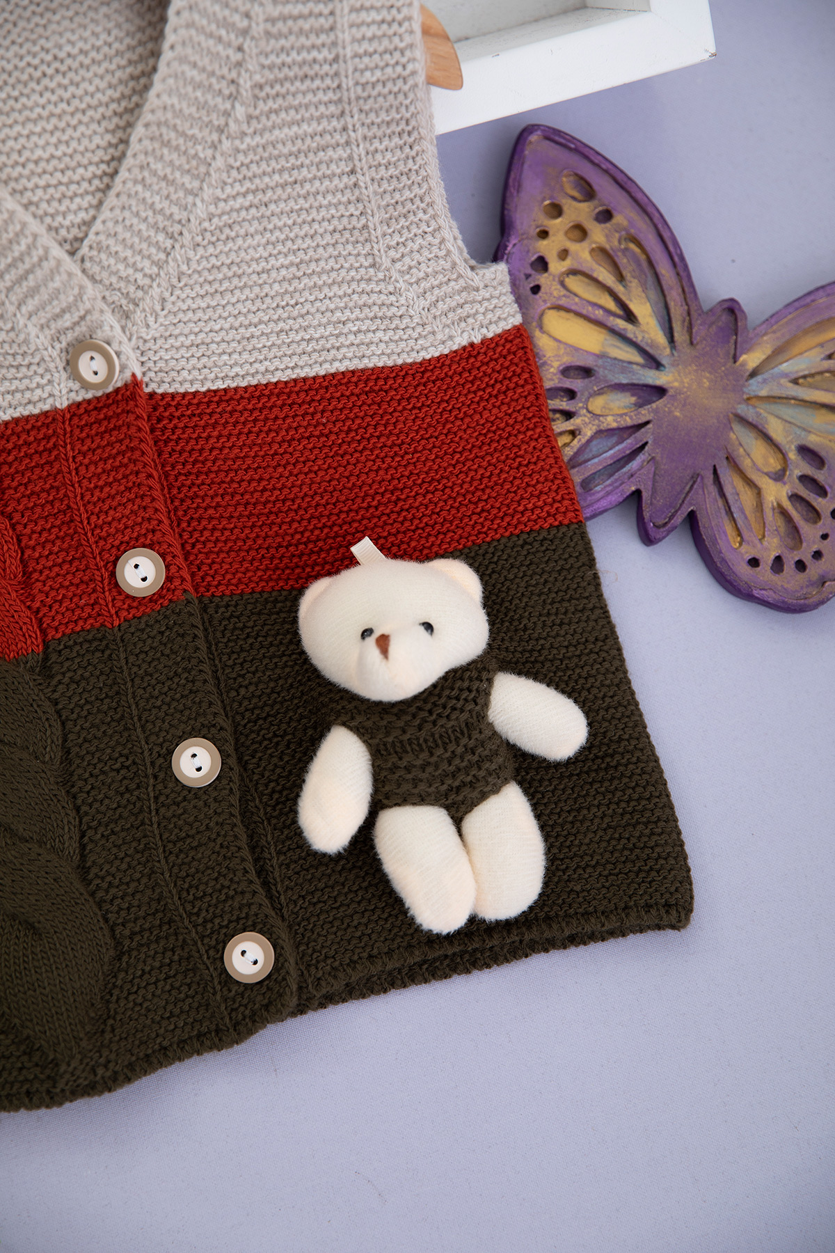 Çocuk Ayıcıklı Triko Yelek - 0493 - 0492 (1-5 Yaş)