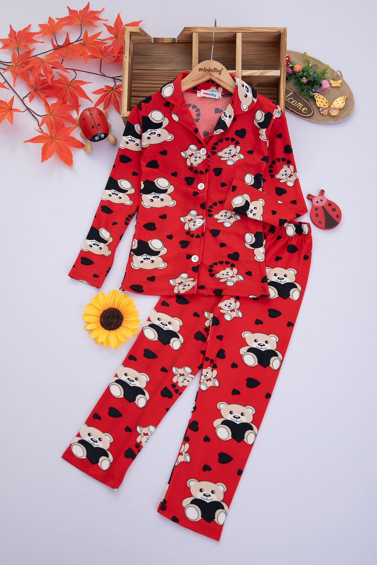 Çocuk Baskılı Düğmeli Pijama Takımı - 9422 (12-16 Yaş)