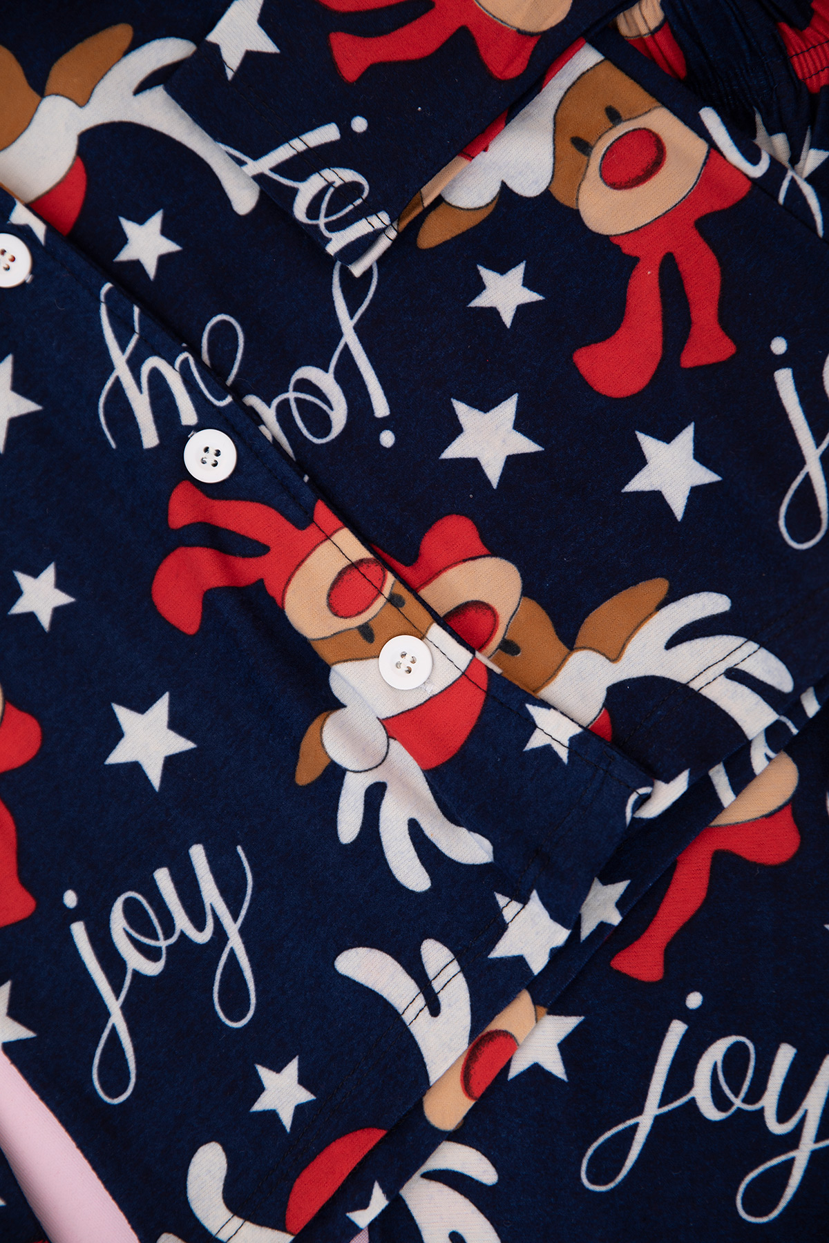 Çocuk Baskılı Düğmeli Pijama Takımı - 9422 (12-16 Yaş)