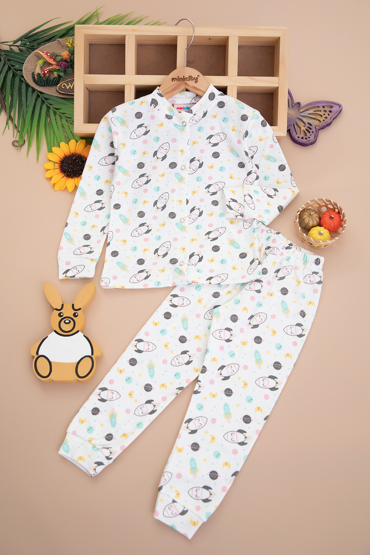 Çocuk Baskılı Önden Çıtçıtlı Pijama Takım - 3833 (2-5 Yaş)