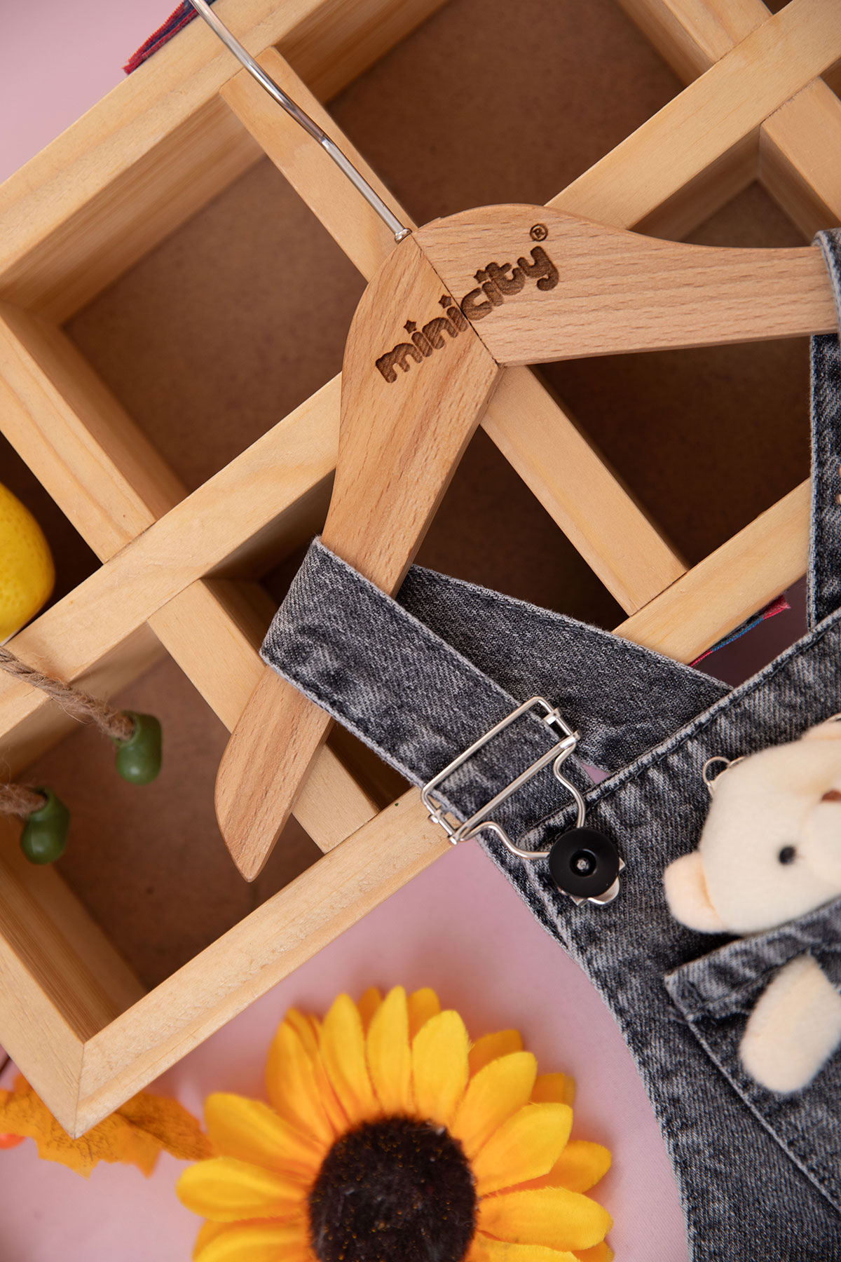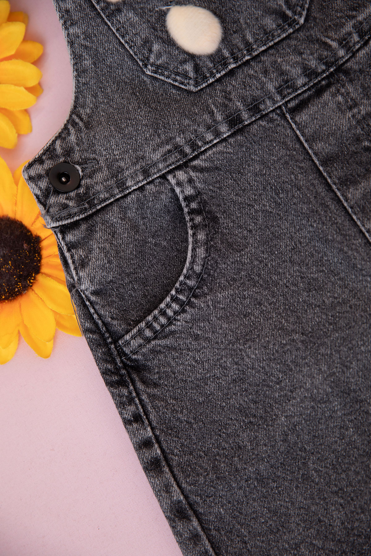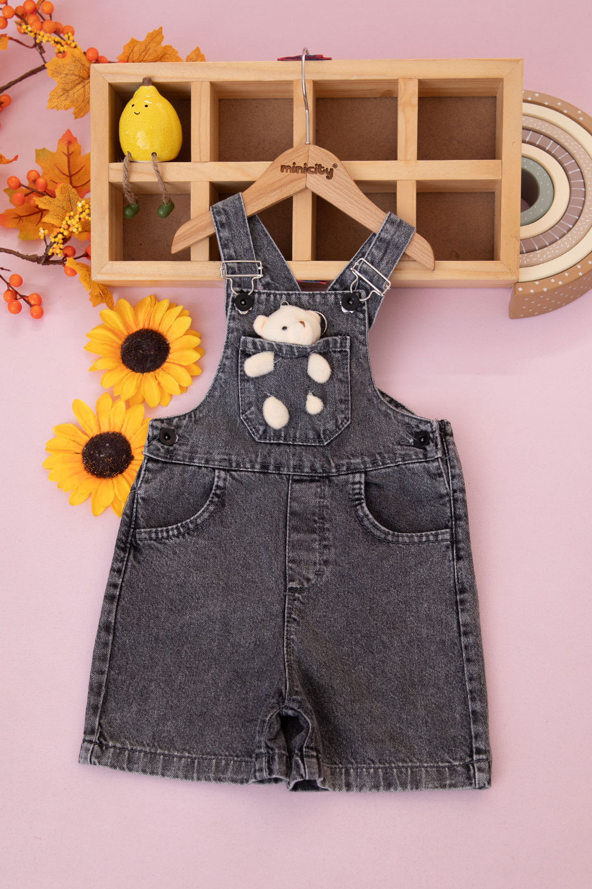 Çocuk Cep Ayıcıklı Kot Şort Salopet - 3398 (5-8 Yaş)