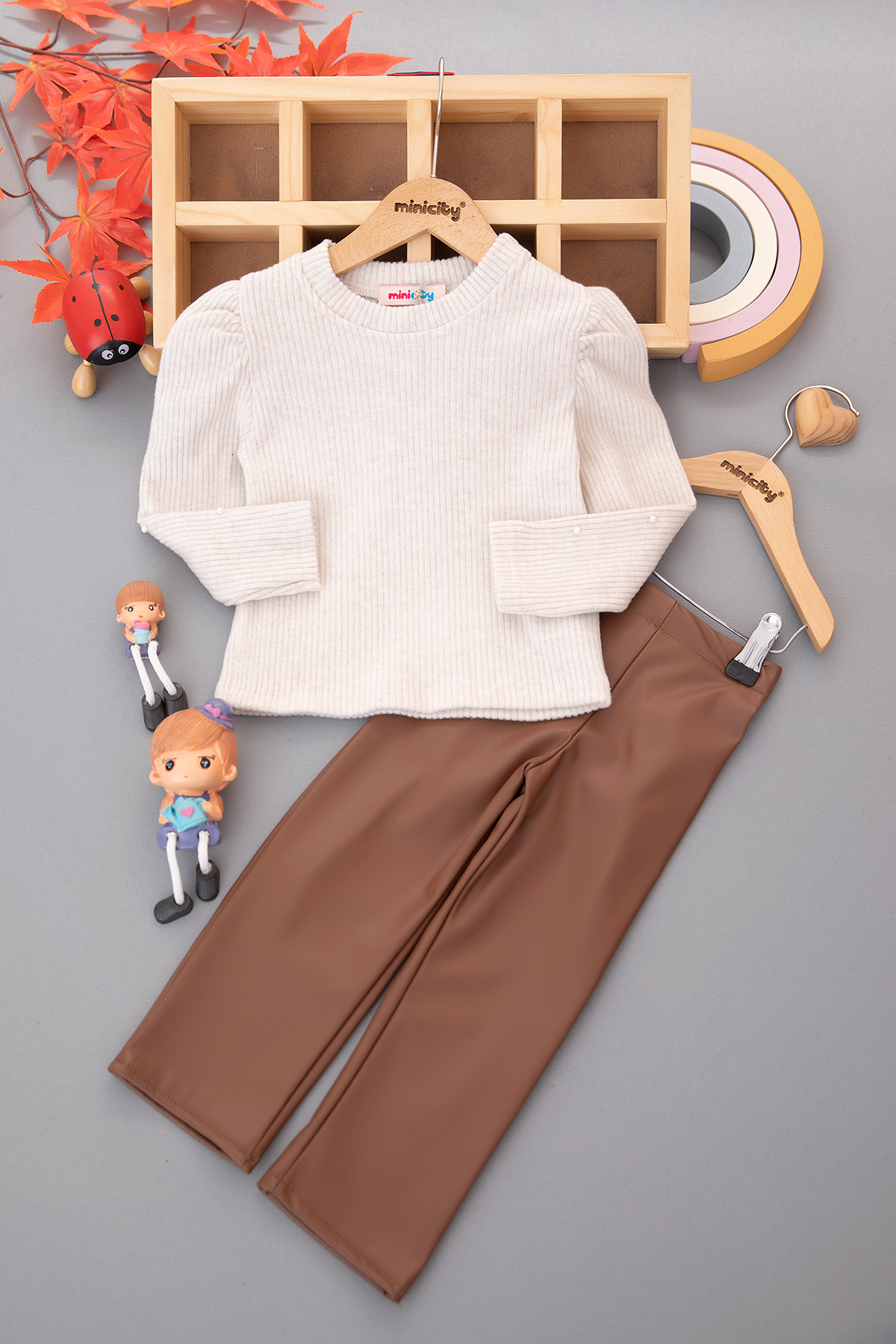 Çocuk Deri Pantolonlu Fitilli Takım - 6197 (2-5 Yaş)