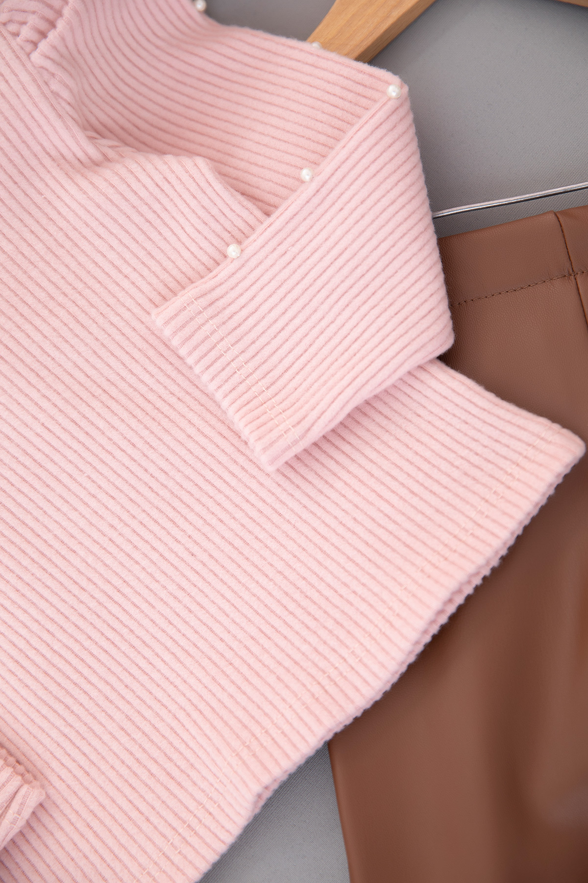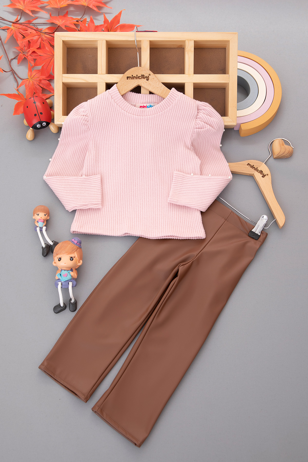 Çocuk Deri Pantolonlu Fitilli Takım - 6198 (6-9 Yaş)