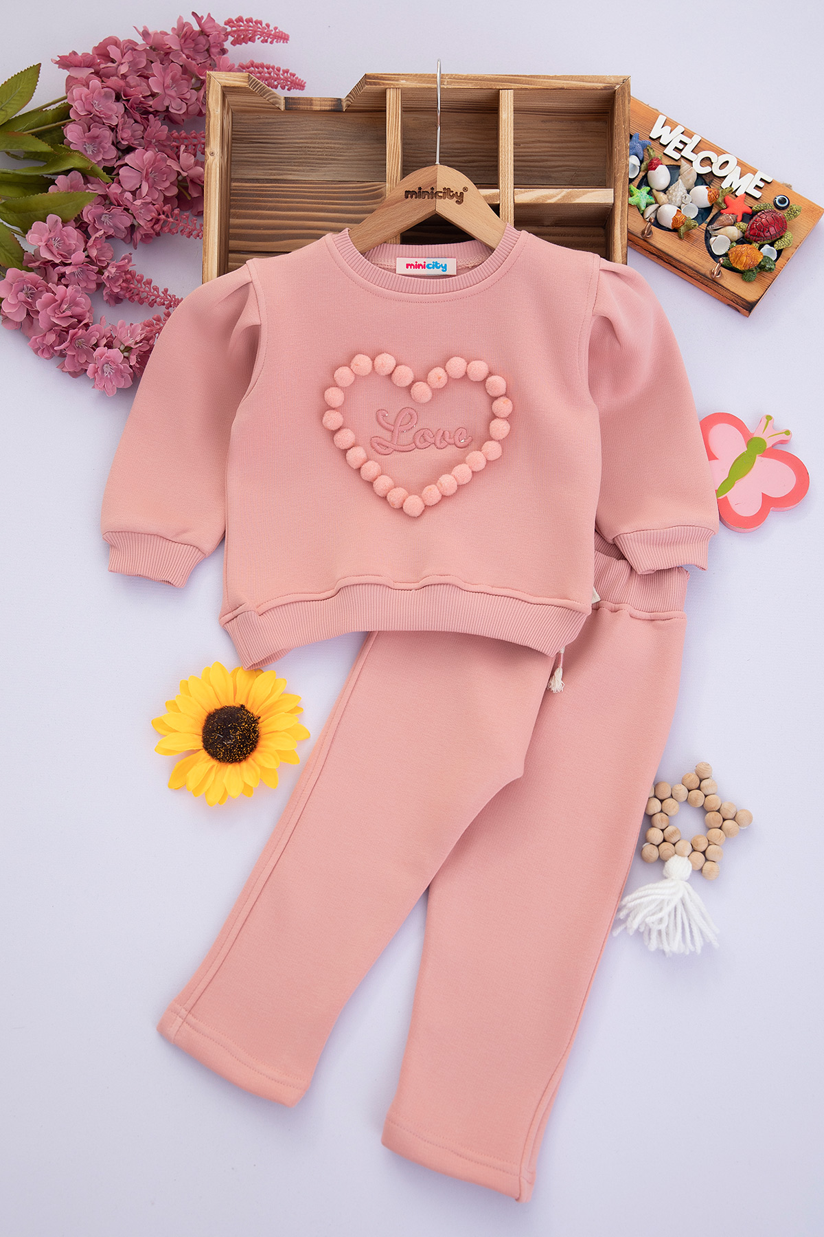 Çocuk Ponponlu Üçip Takım - 3222 (6-9 Yaş)