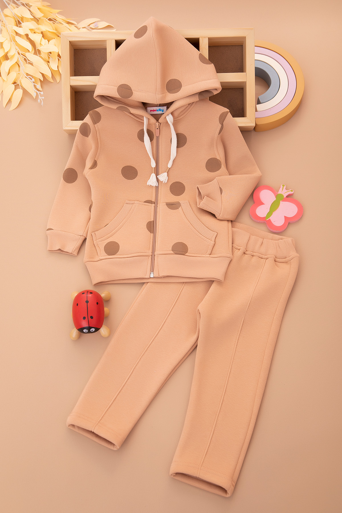 Çocuk Puanlı Fermuarlı Kapşonlu Üçip Takım - 3165 (2-5 Yaş)