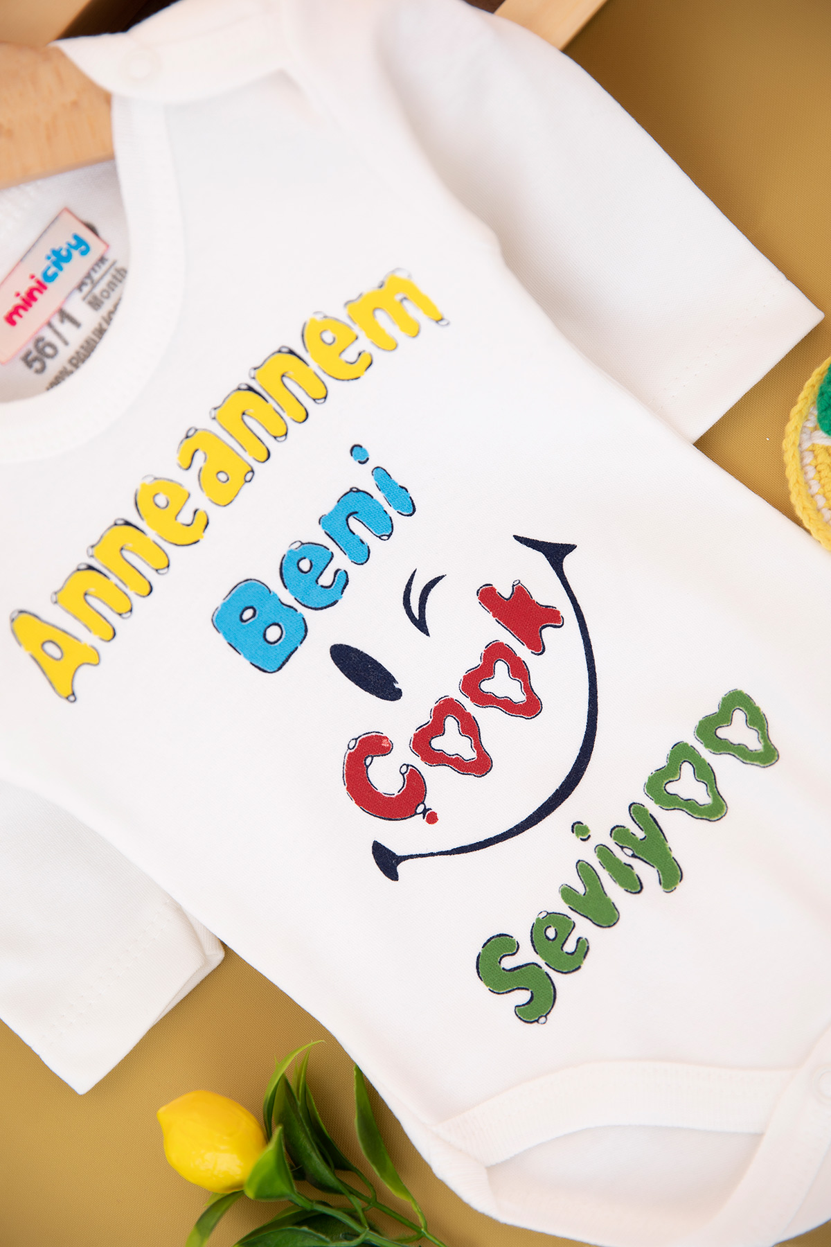 Çocuk Seviyor Baskılı Uzun Kol Body - 7282 (1-3 Yaş)