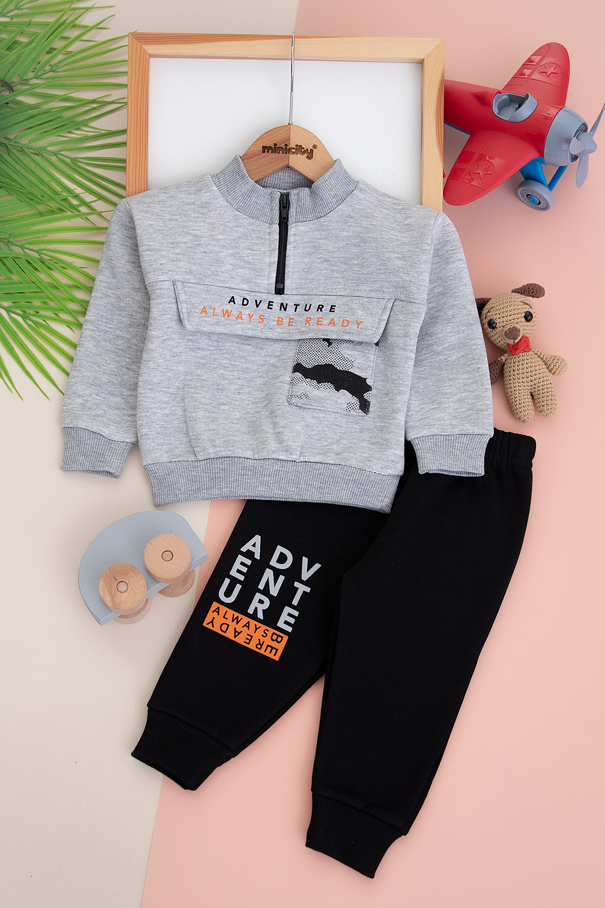 Erkek Bebek Adventure Baskılı Üçip Takım - 23727 (9-24 Ay)