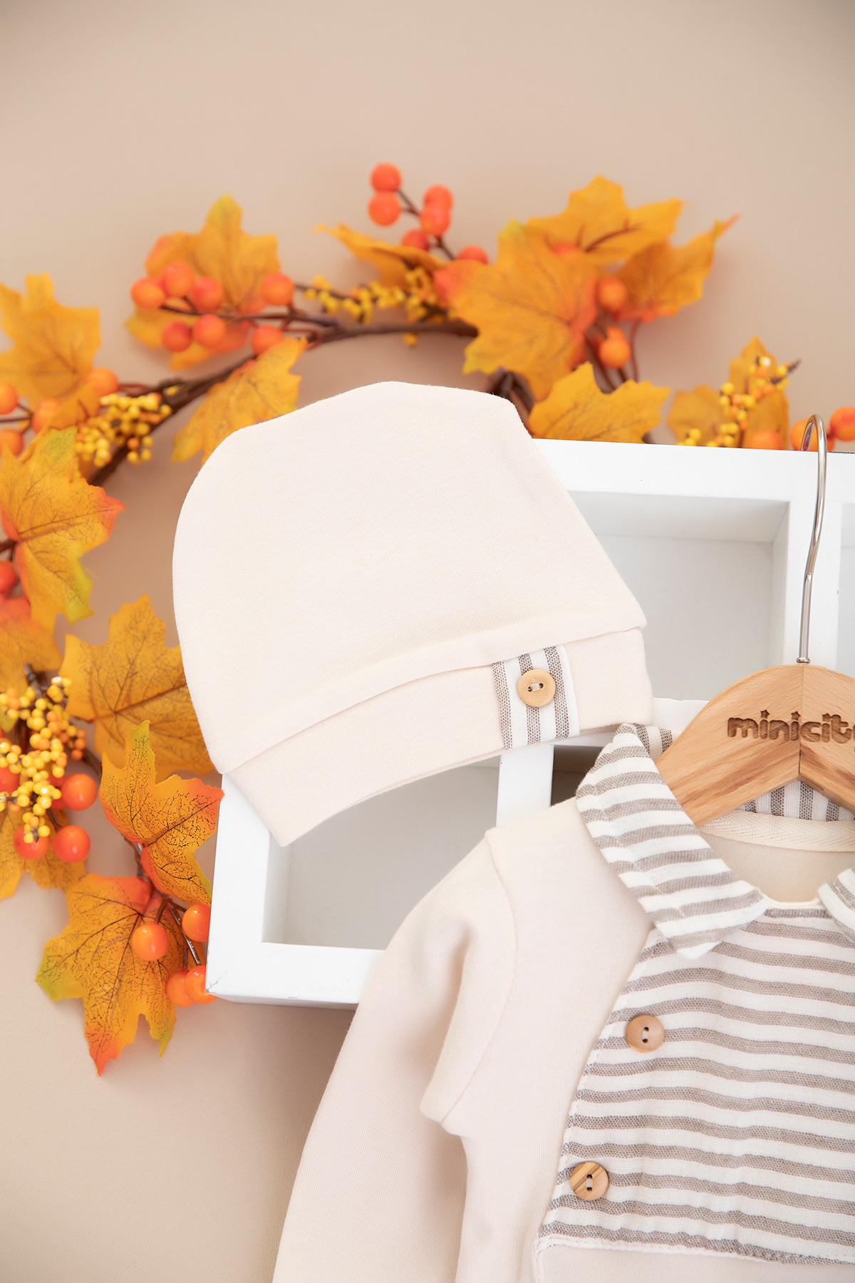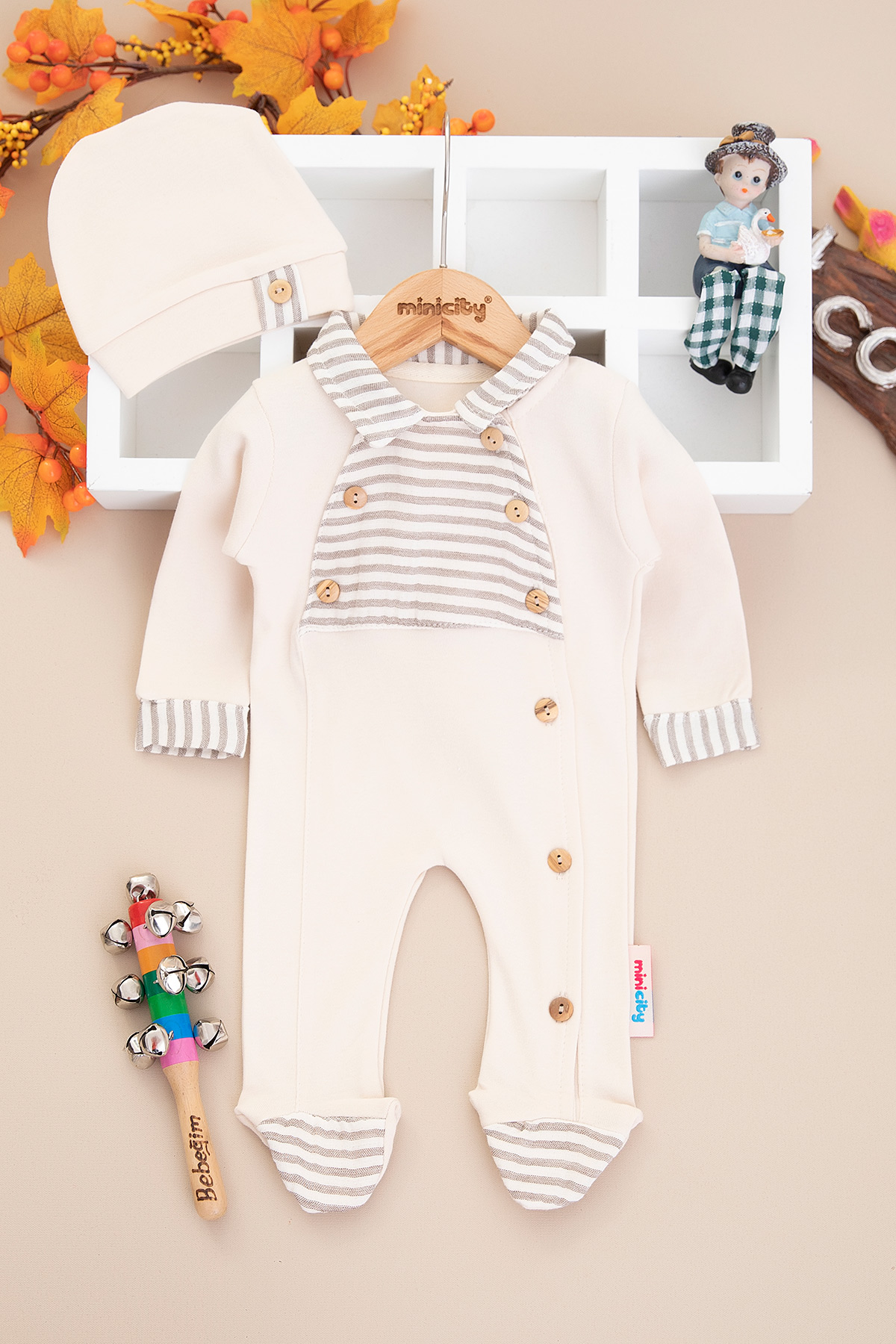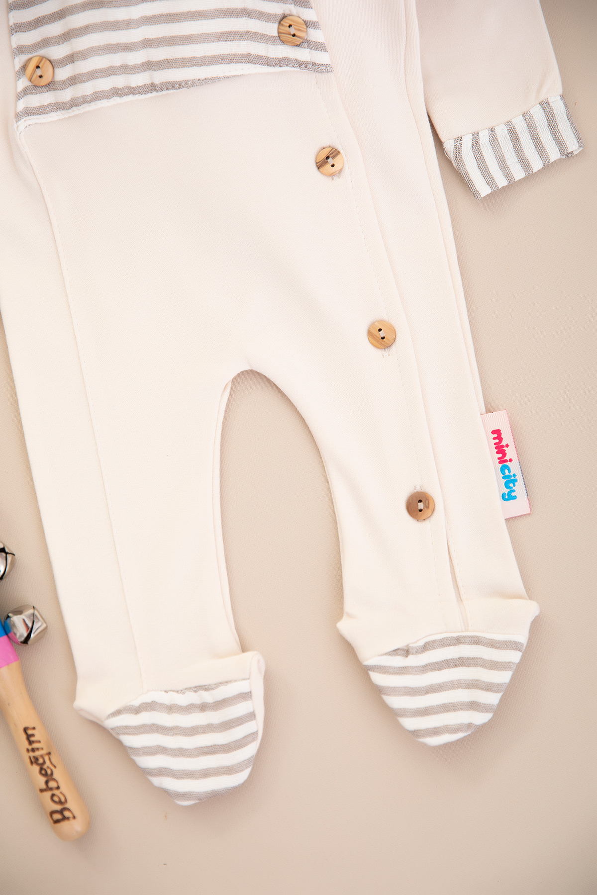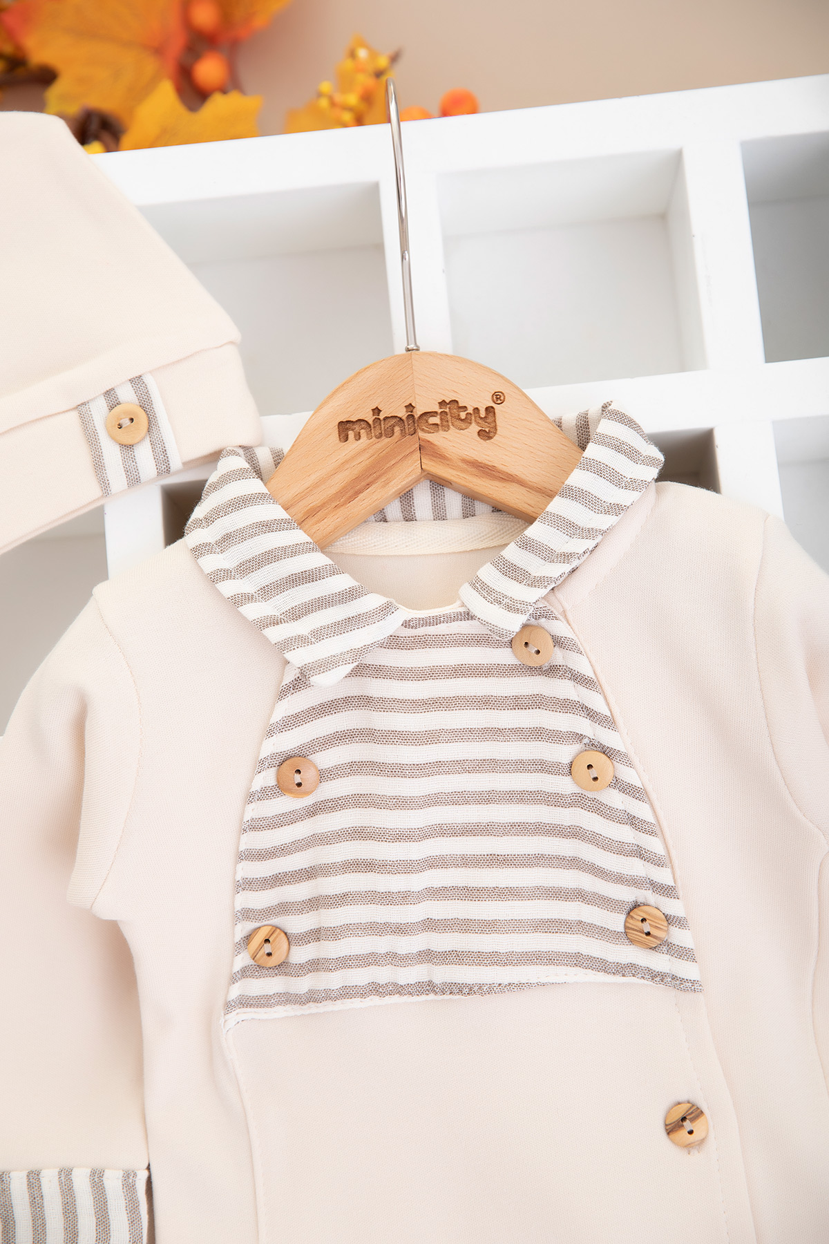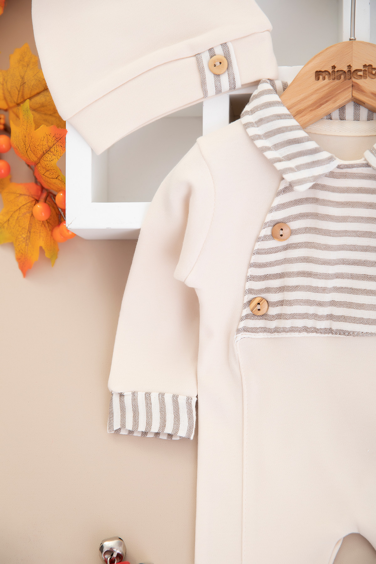 Erkek Bebek Ahşap Düğmeli Çizgili Tulum - 20010 (0-3 Ay)