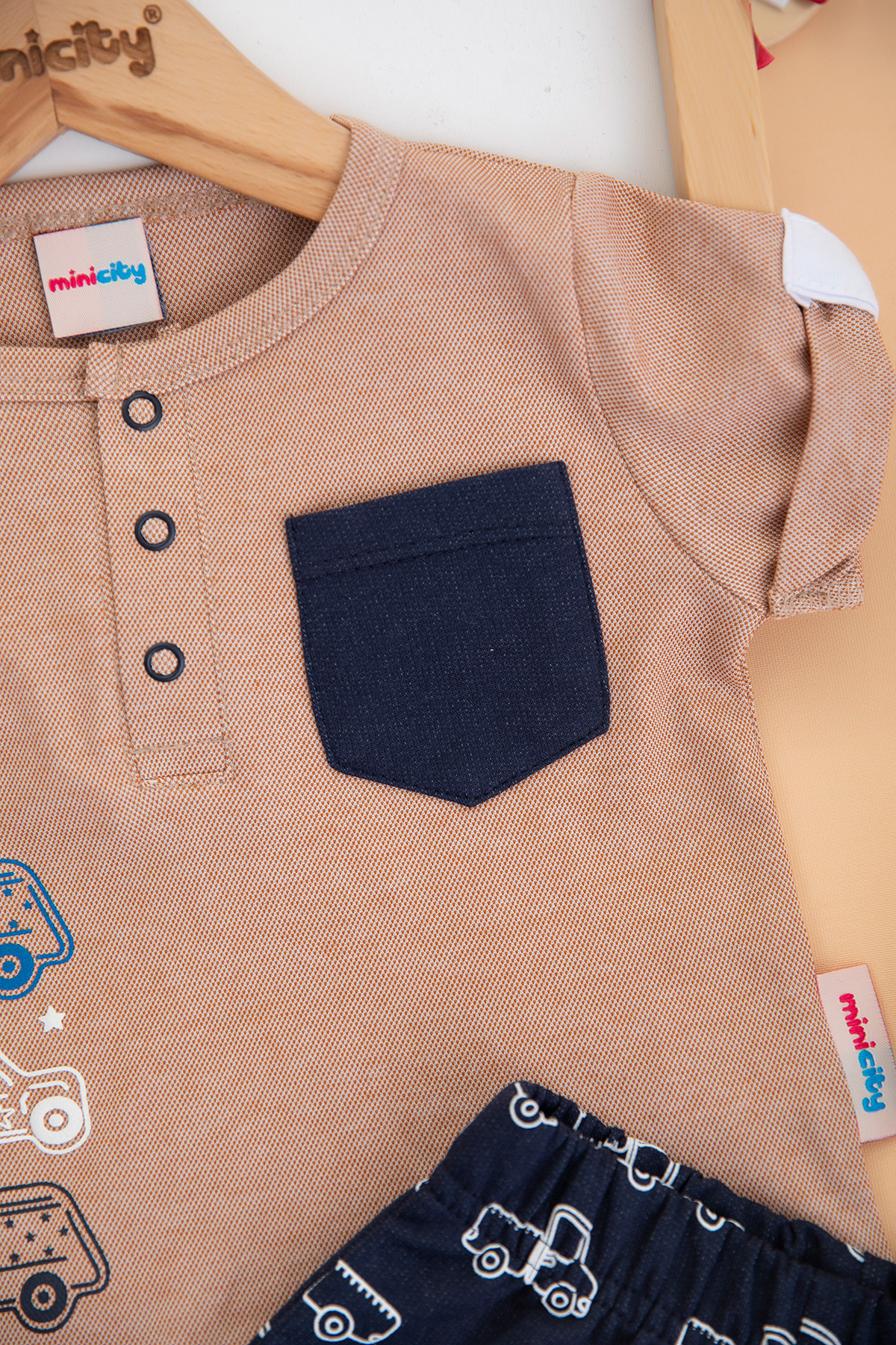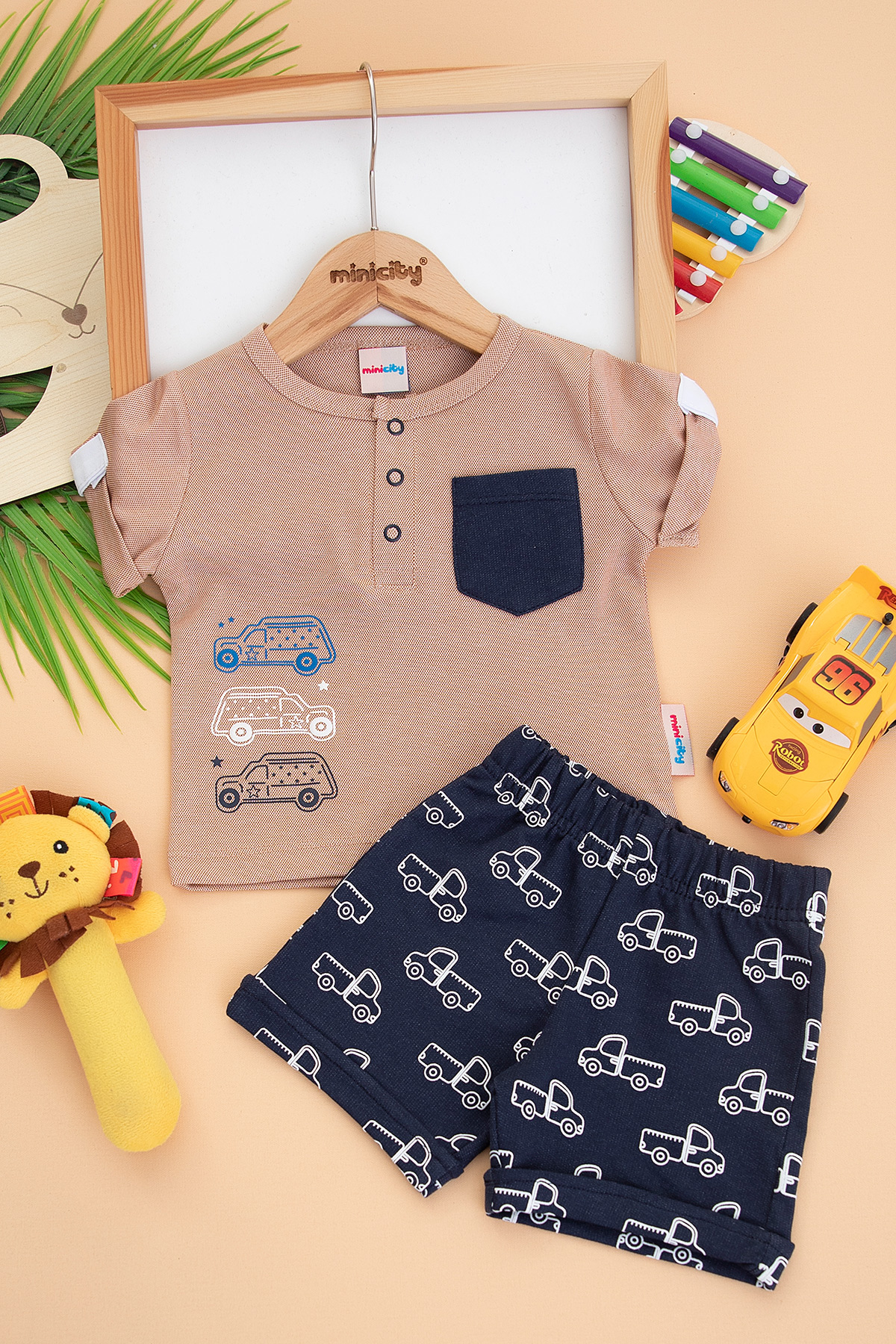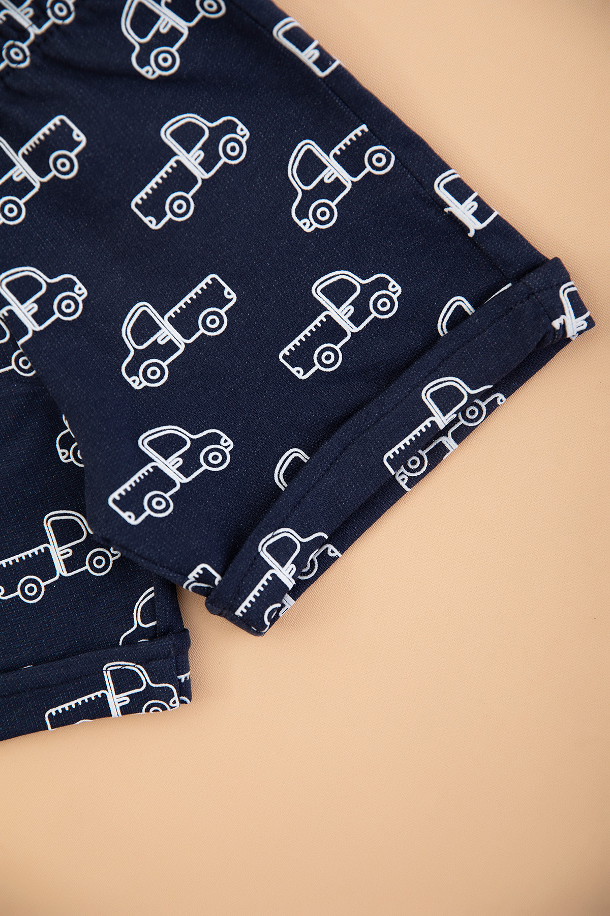 Erkek Bebek Araba Baskılı Kot Şortlu Takım - 24106 (9-24 Ay)