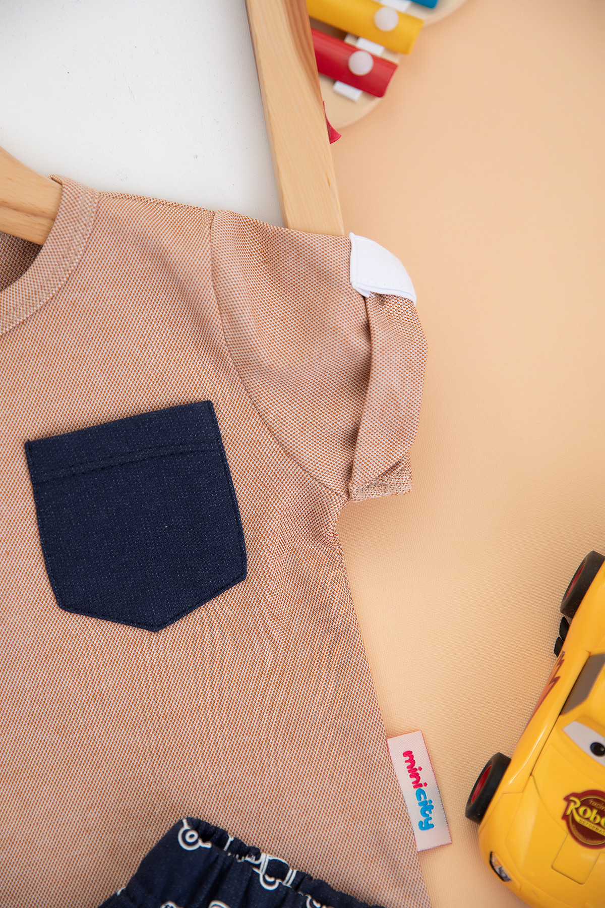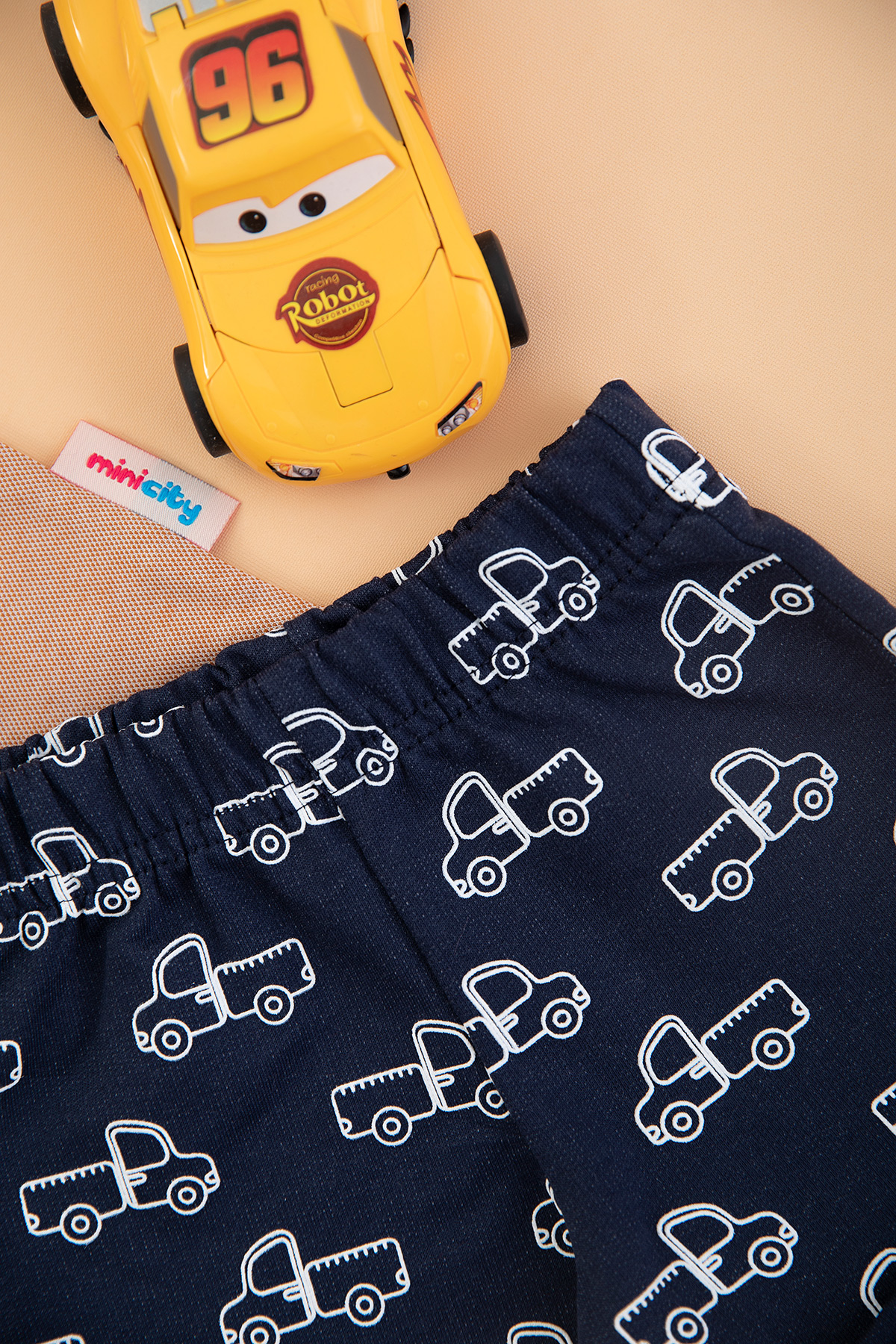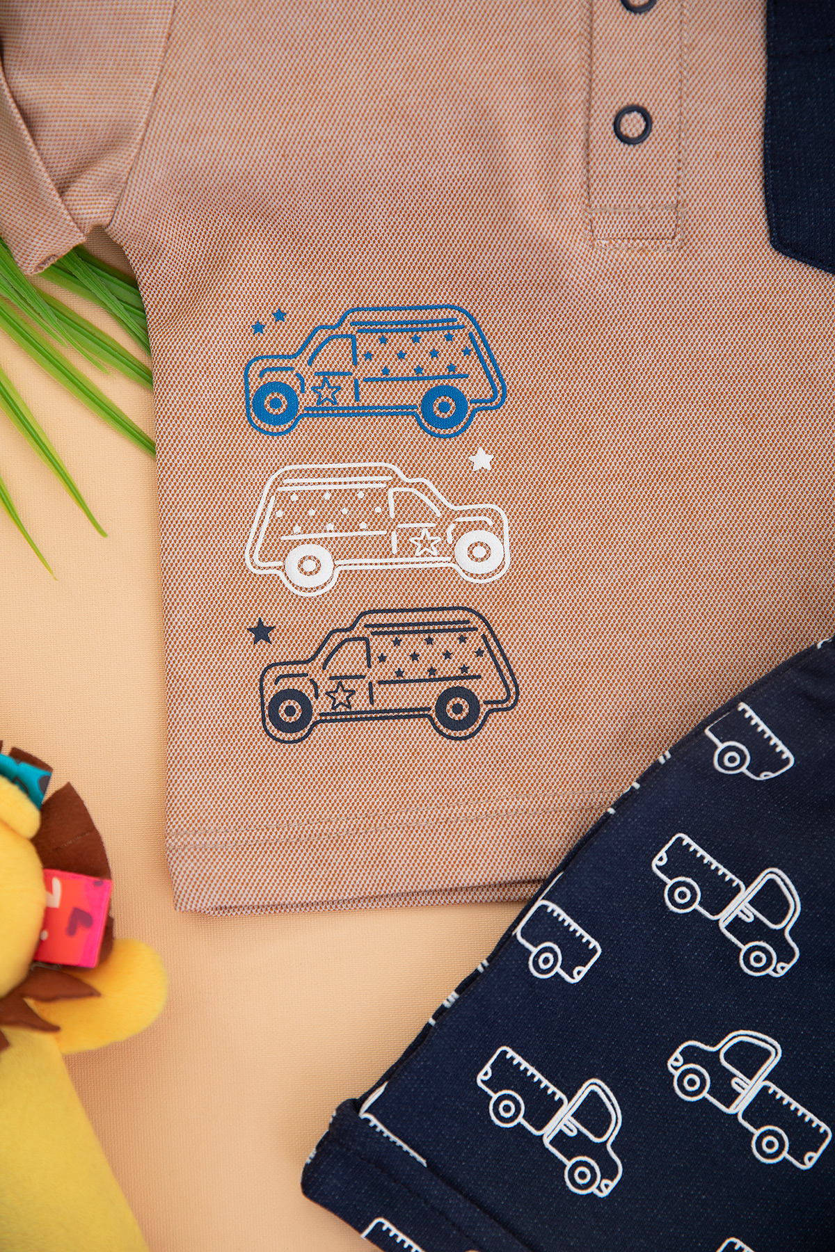 Erkek Bebek Araba Baskılı Kot Şortlu Takım - 24106 (9-24 Ay)