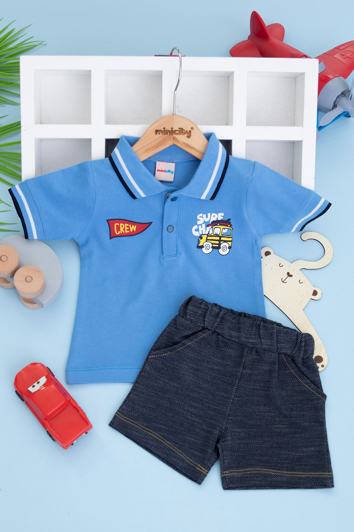 Erkek Bebek Araba Baskılı Şortlu Takım - 23137 (9-24 Ay)