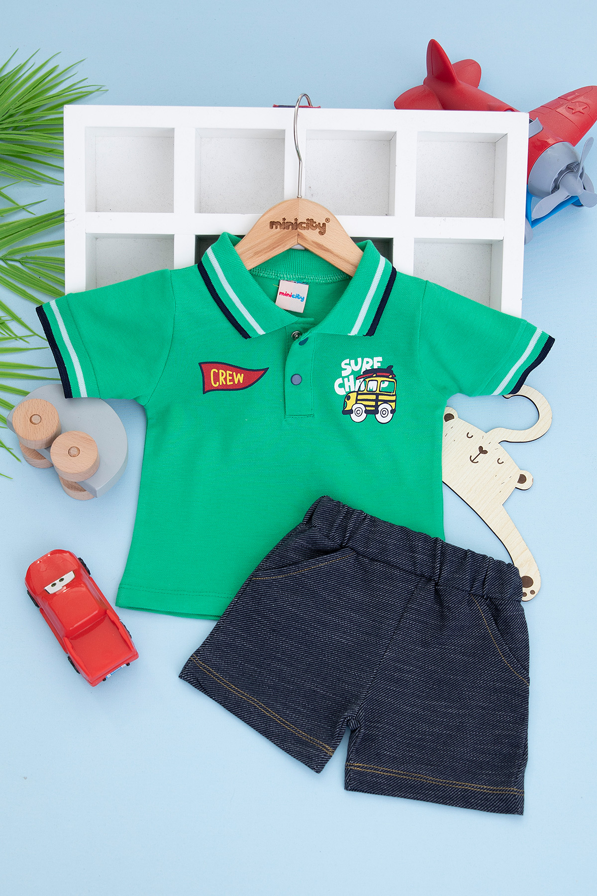 Erkek Bebek Araba Baskılı Şortlu Takım - 23137 (9-24 Ay)
