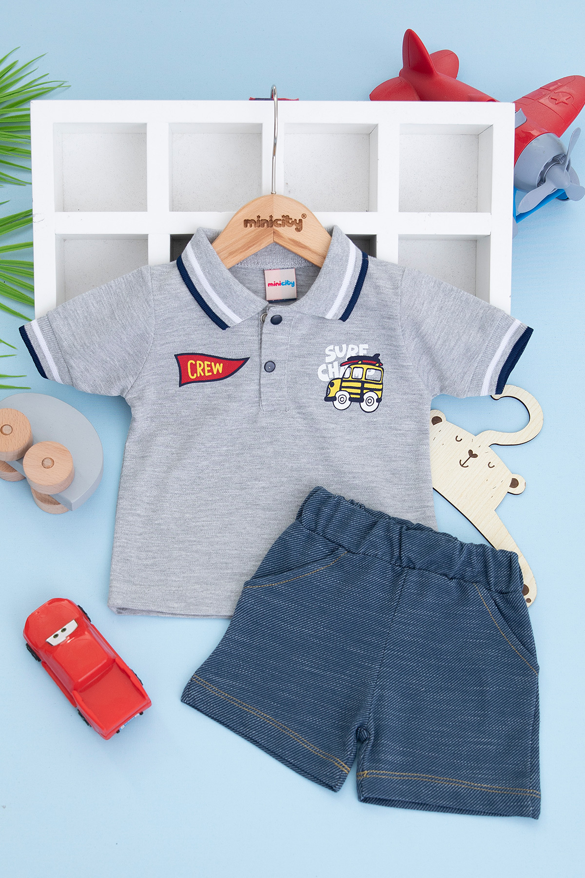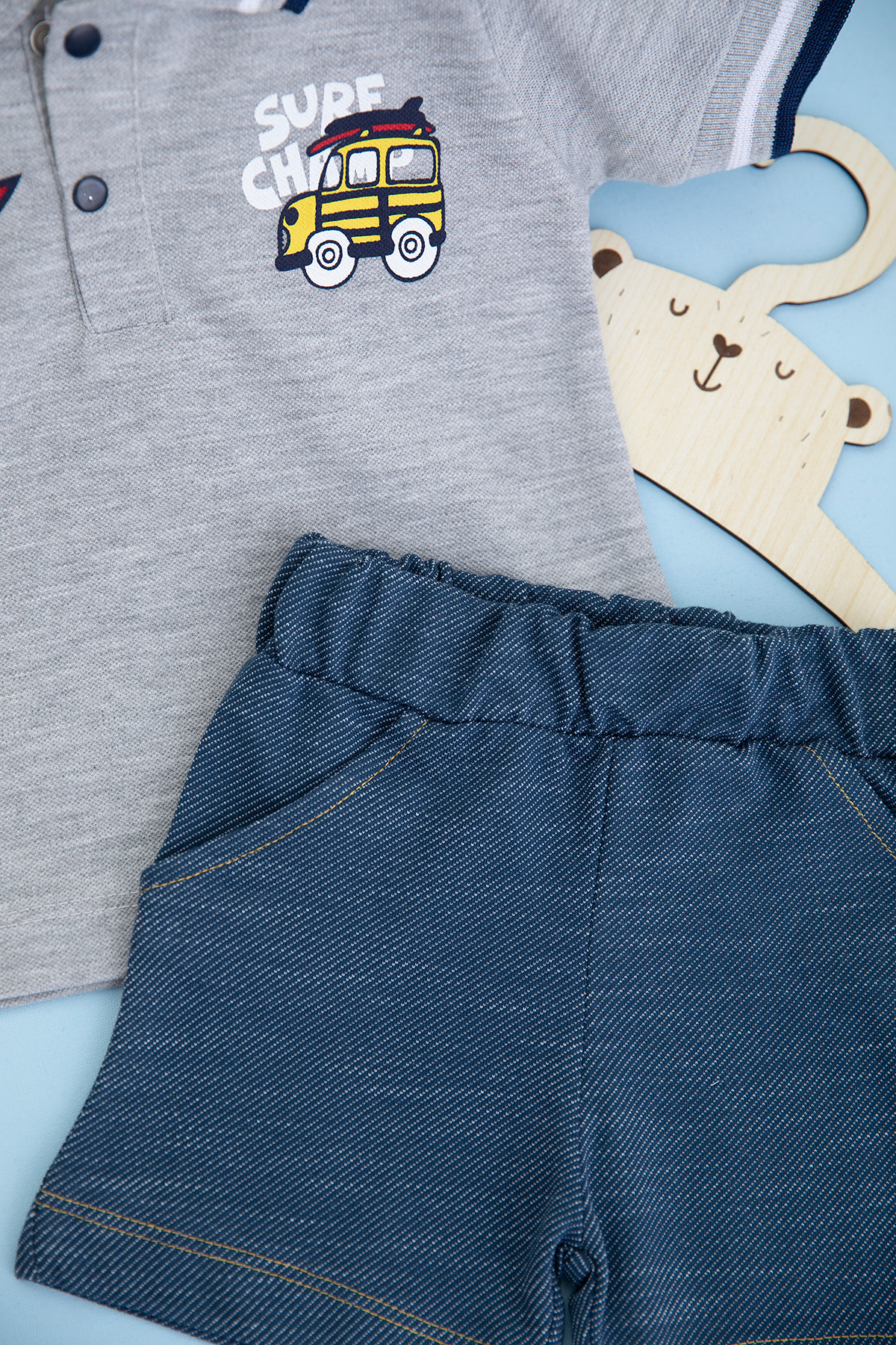 Erkek Bebek Araba Baskılı Şortlu Takım - 23137 (9-24 Ay)