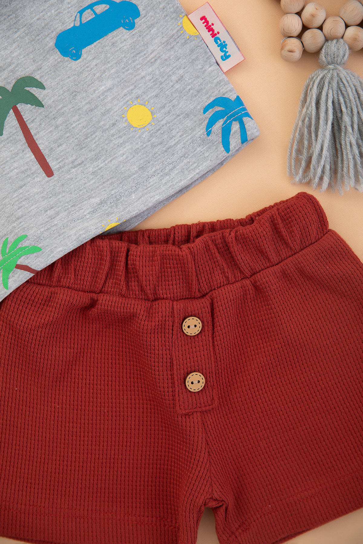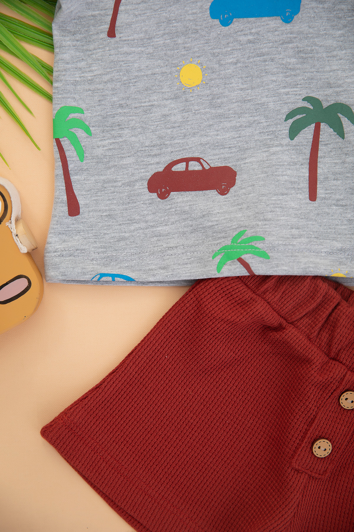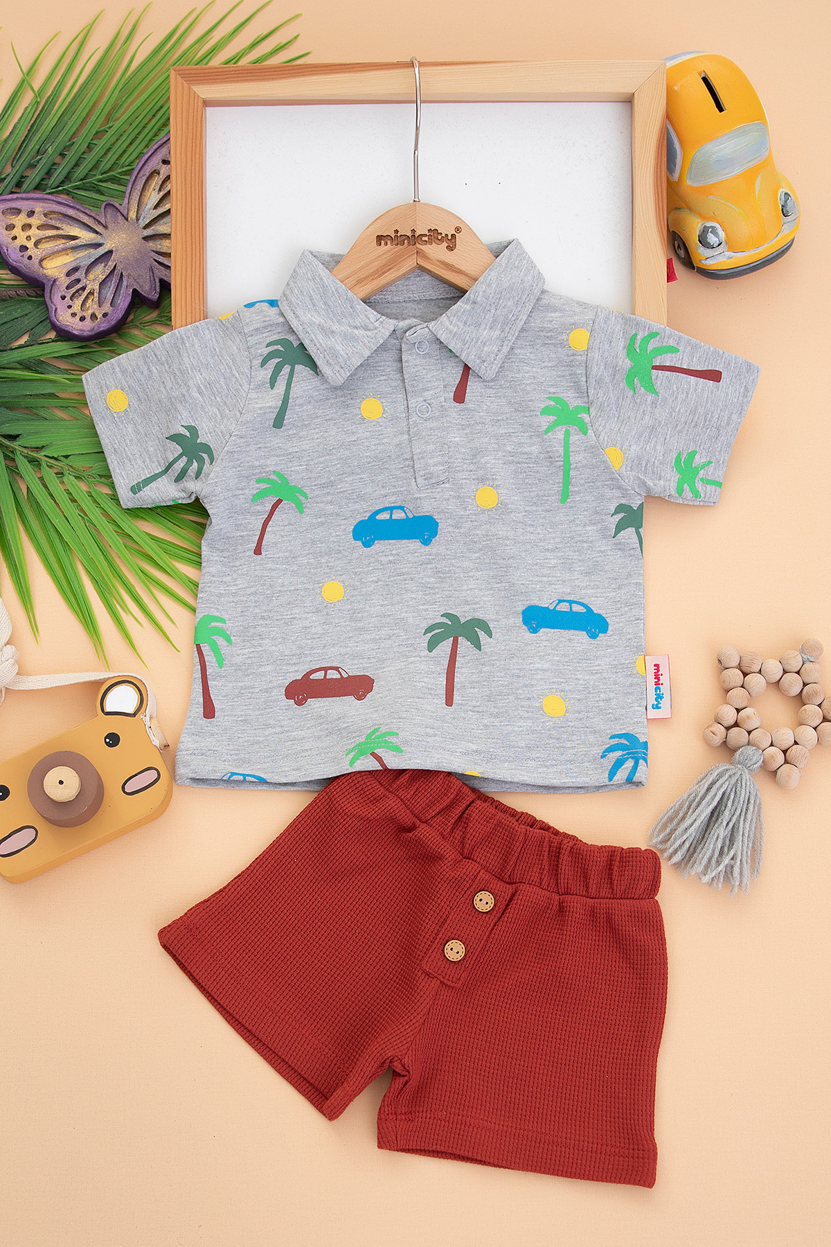 Erkek Bebek Araba Baskılı Şortlu Takım - 24143 (9-24 Ay)