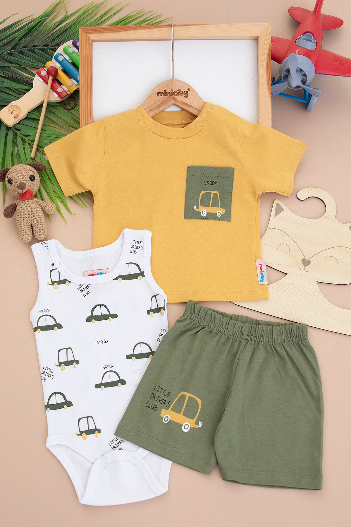 Erkek Bebek Araba Baskılı Şortlu Takım - 24388 (9-24 Ay)