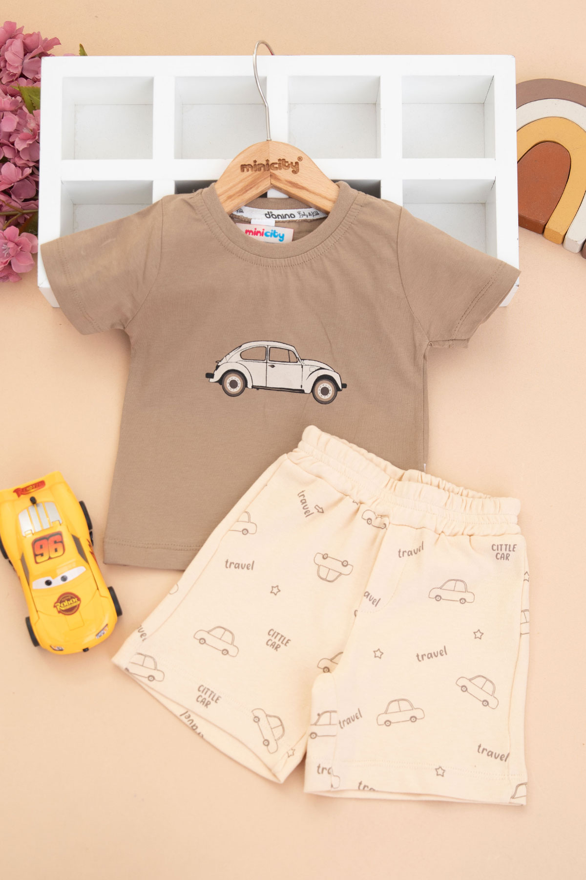 Erkek Bebek Araba Baskılı Şortlu Takım - 40946 (6-24 Ay)