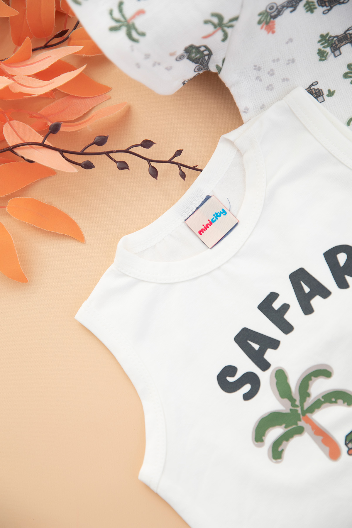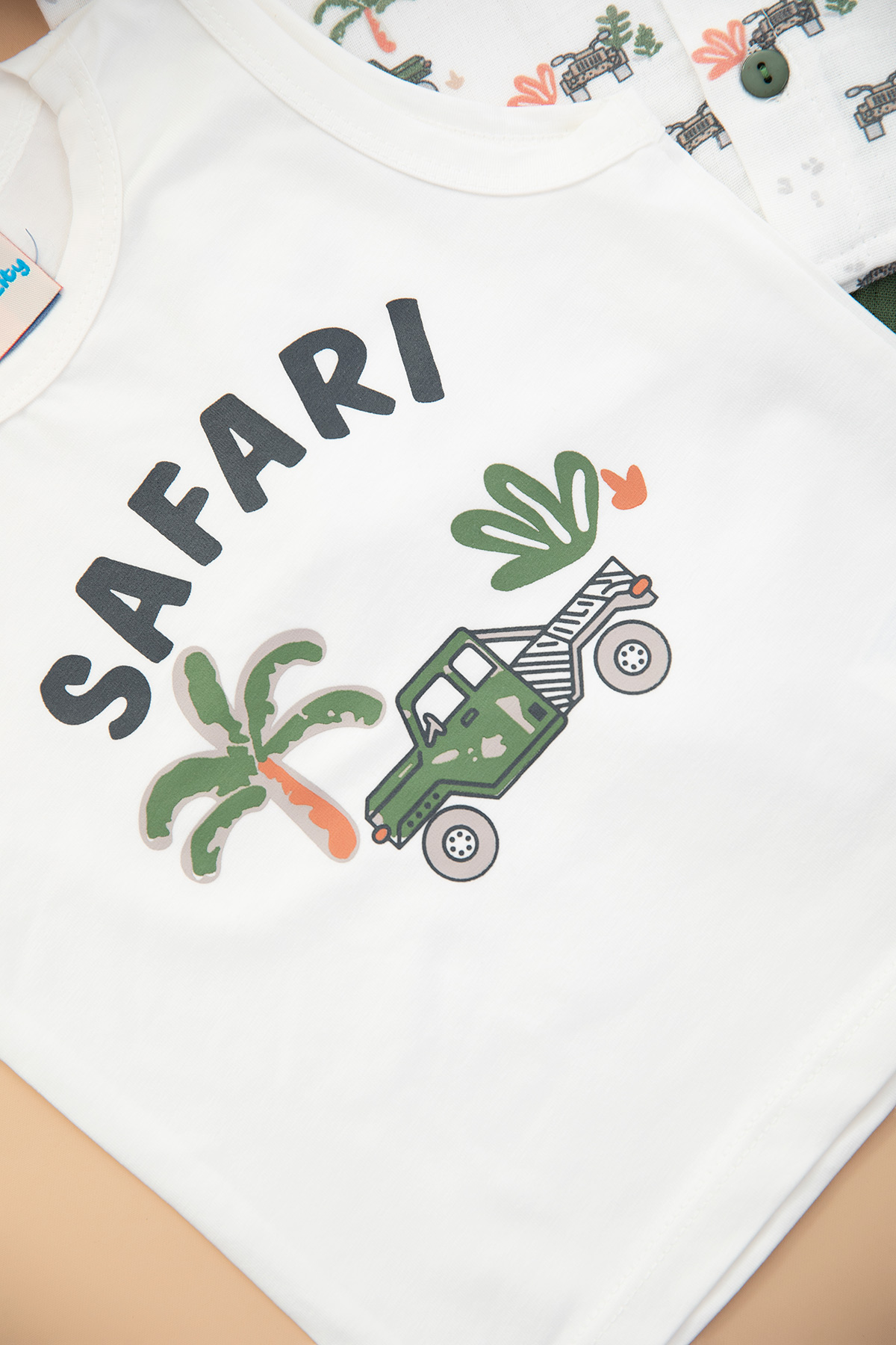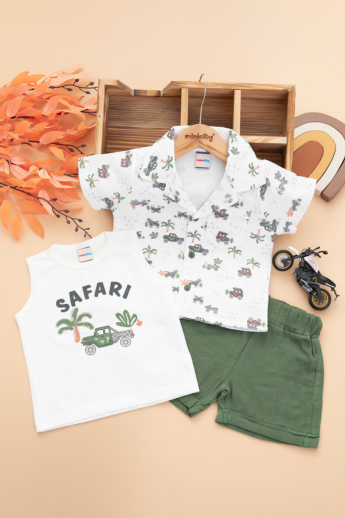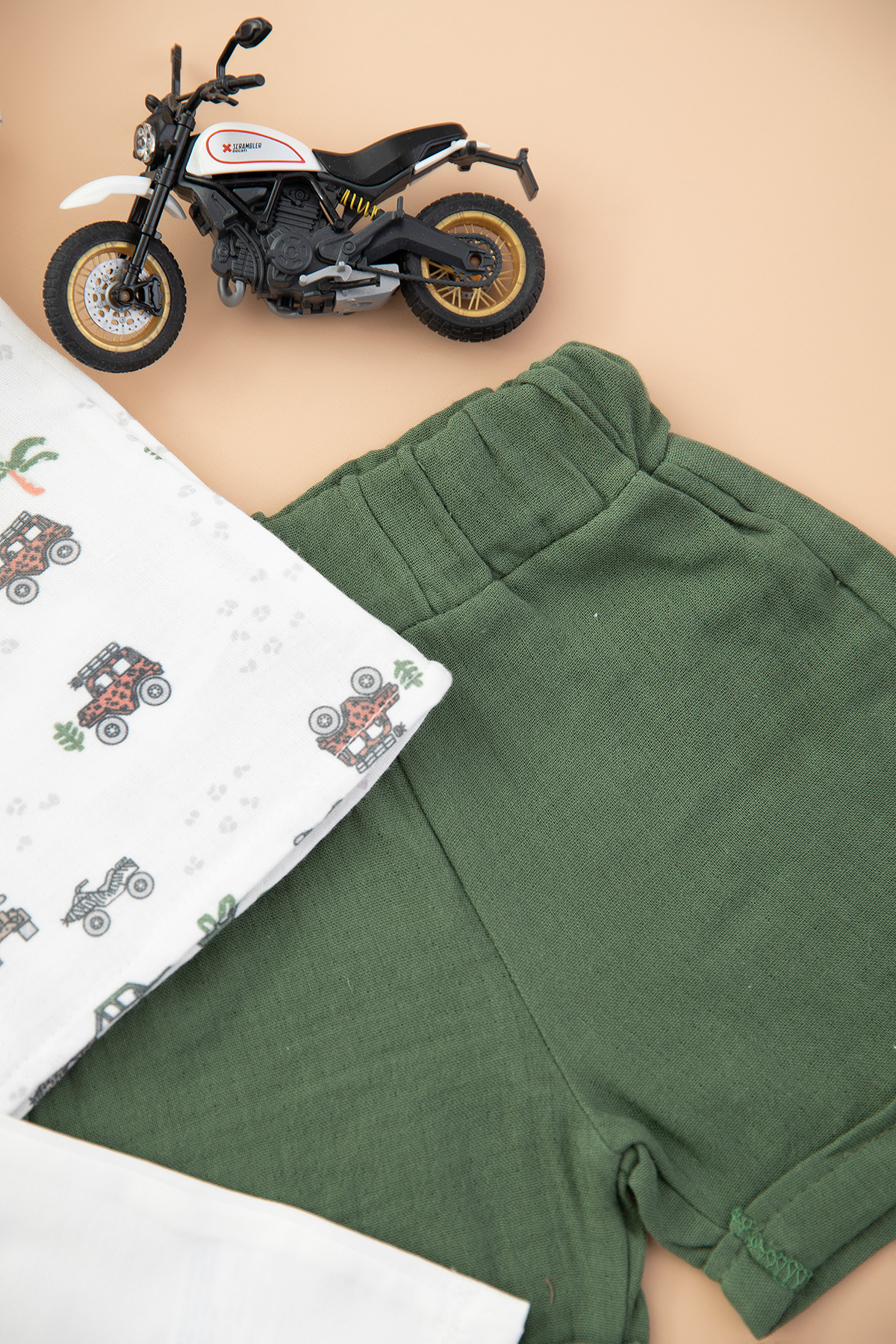 Erkek Bebek Araba Baskılı Üçlü Şortlu Takım - 25300 (9-24 Ay)