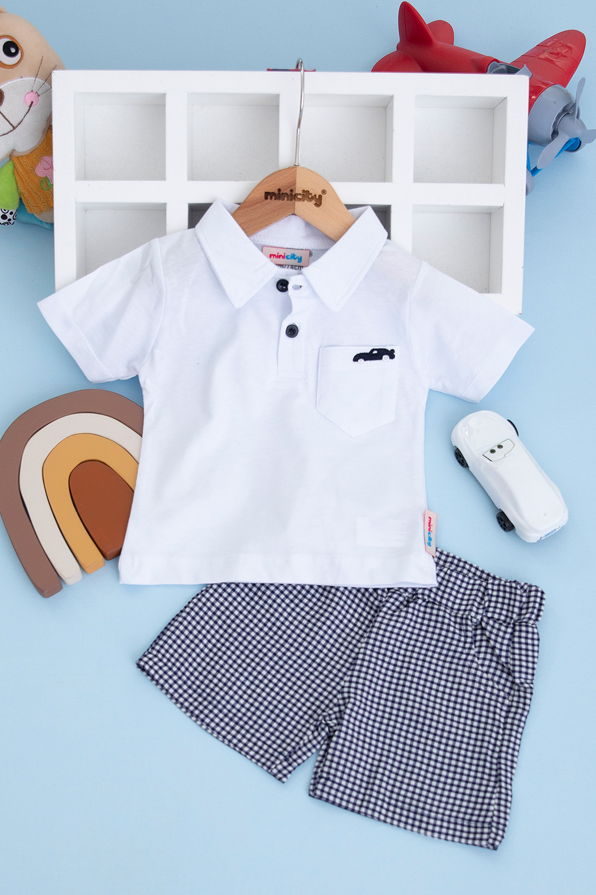 Erkek Bebek Araba Nakışlı Şortlu Takım - 23070 (9-24 Ay)