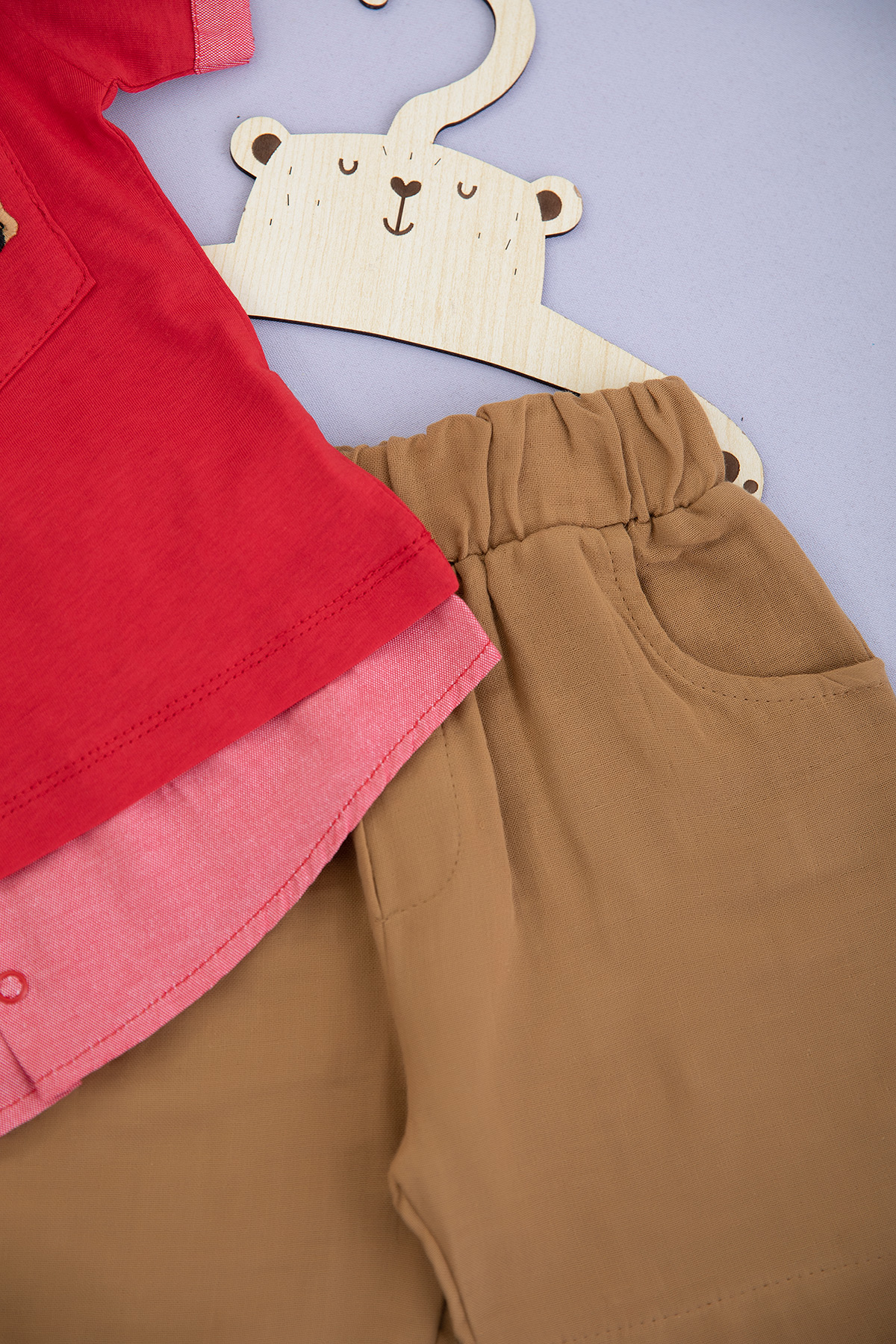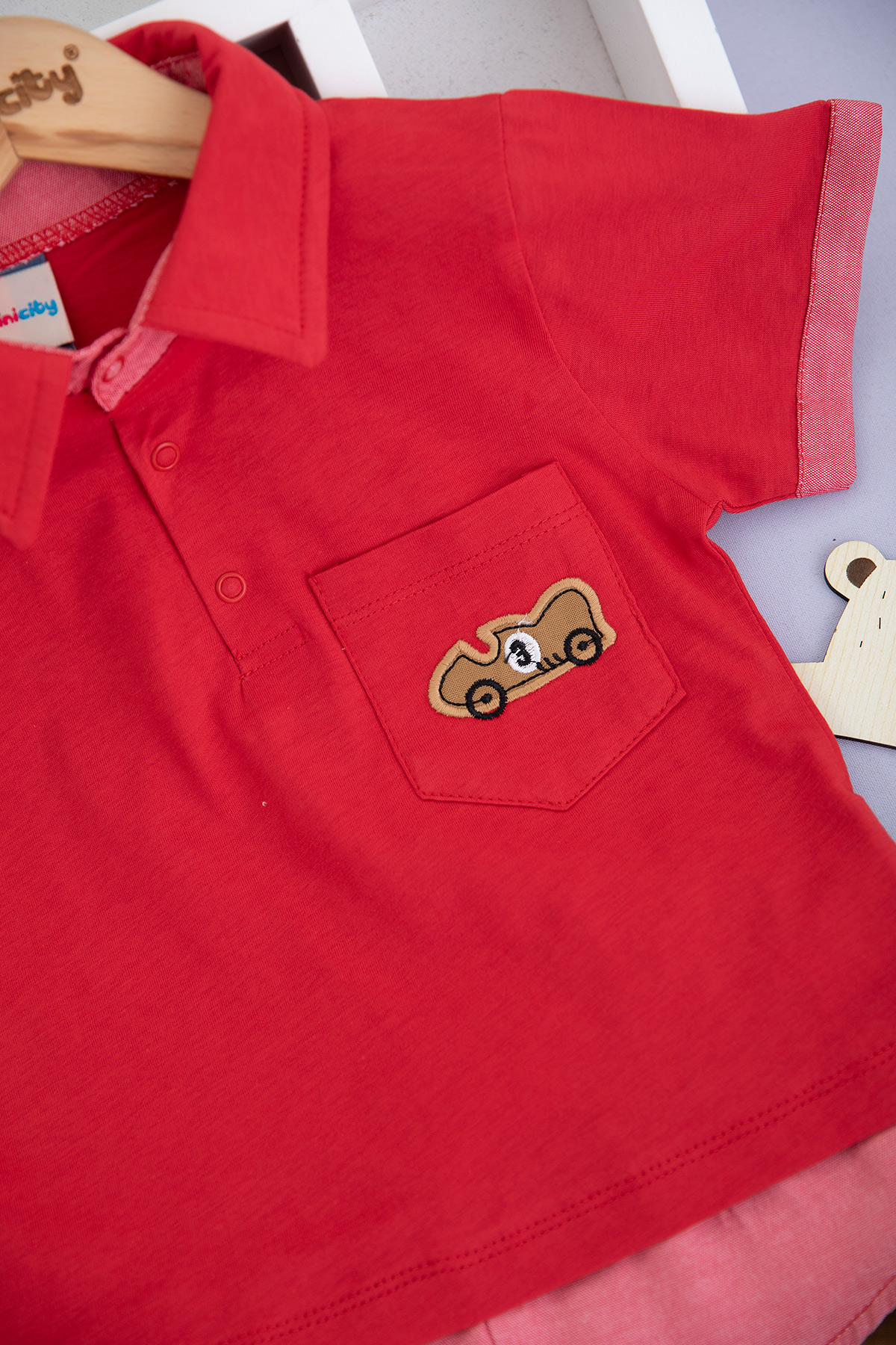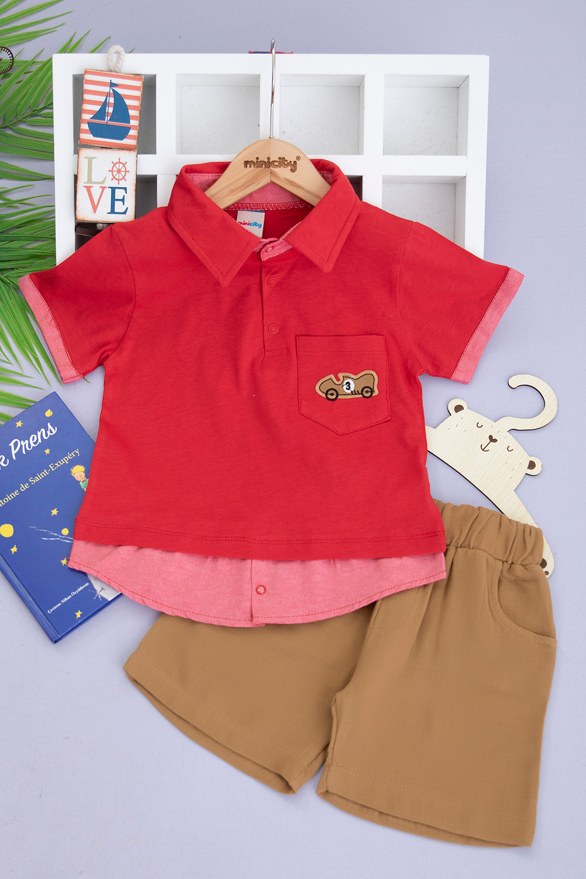 Erkek Bebek Araba Nakışlı Şortlu Takım - 23384 (9-24 Ay)